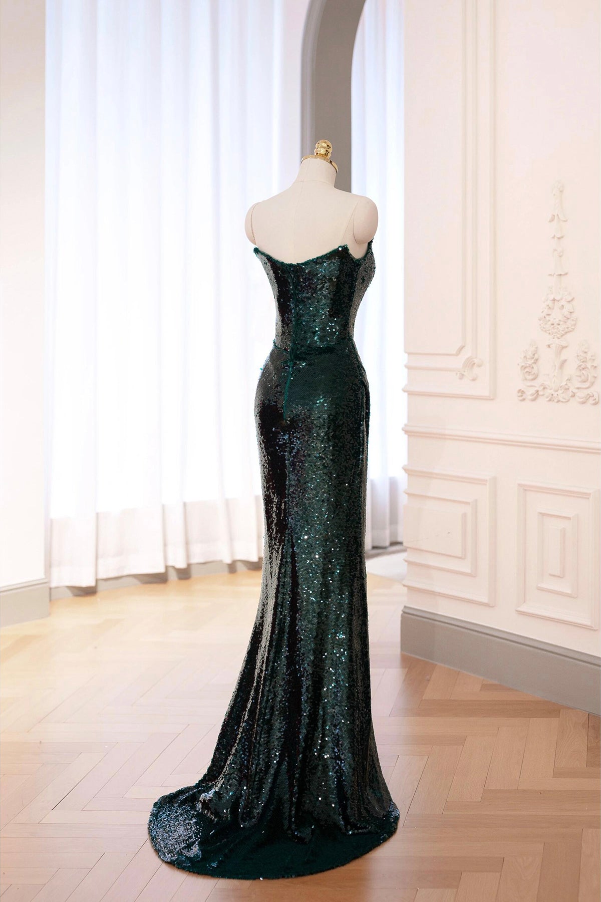 Green Sequins Long Prom Dress, Mermaid Off the Shoulder Party Dress