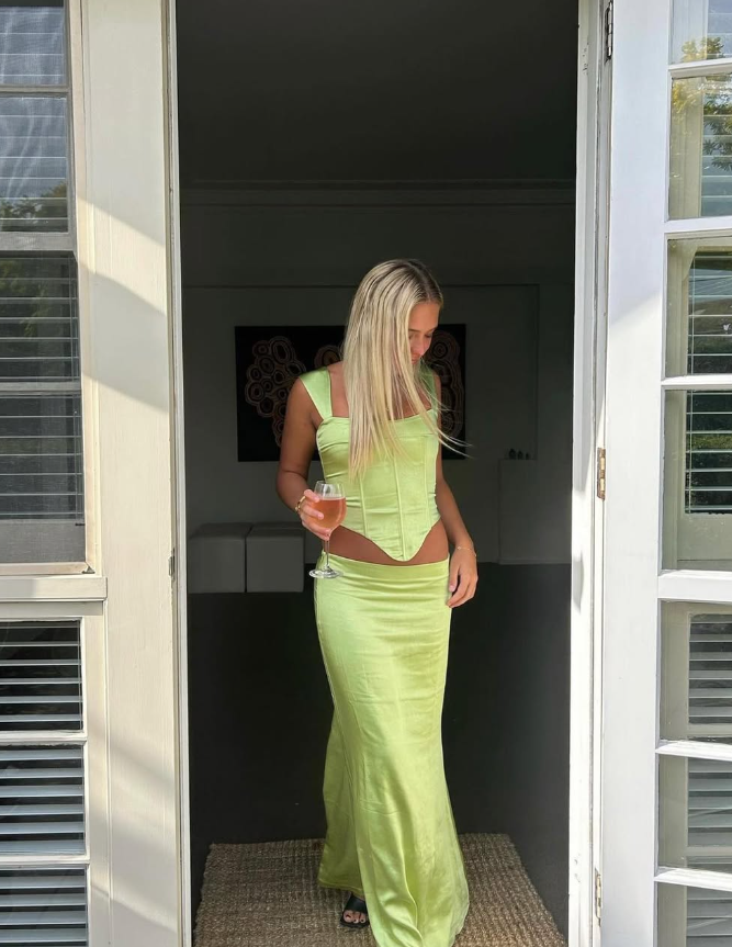 Green Sheath Straps Two Piece Corset Satin Prom Dress Evening Dress SH1968