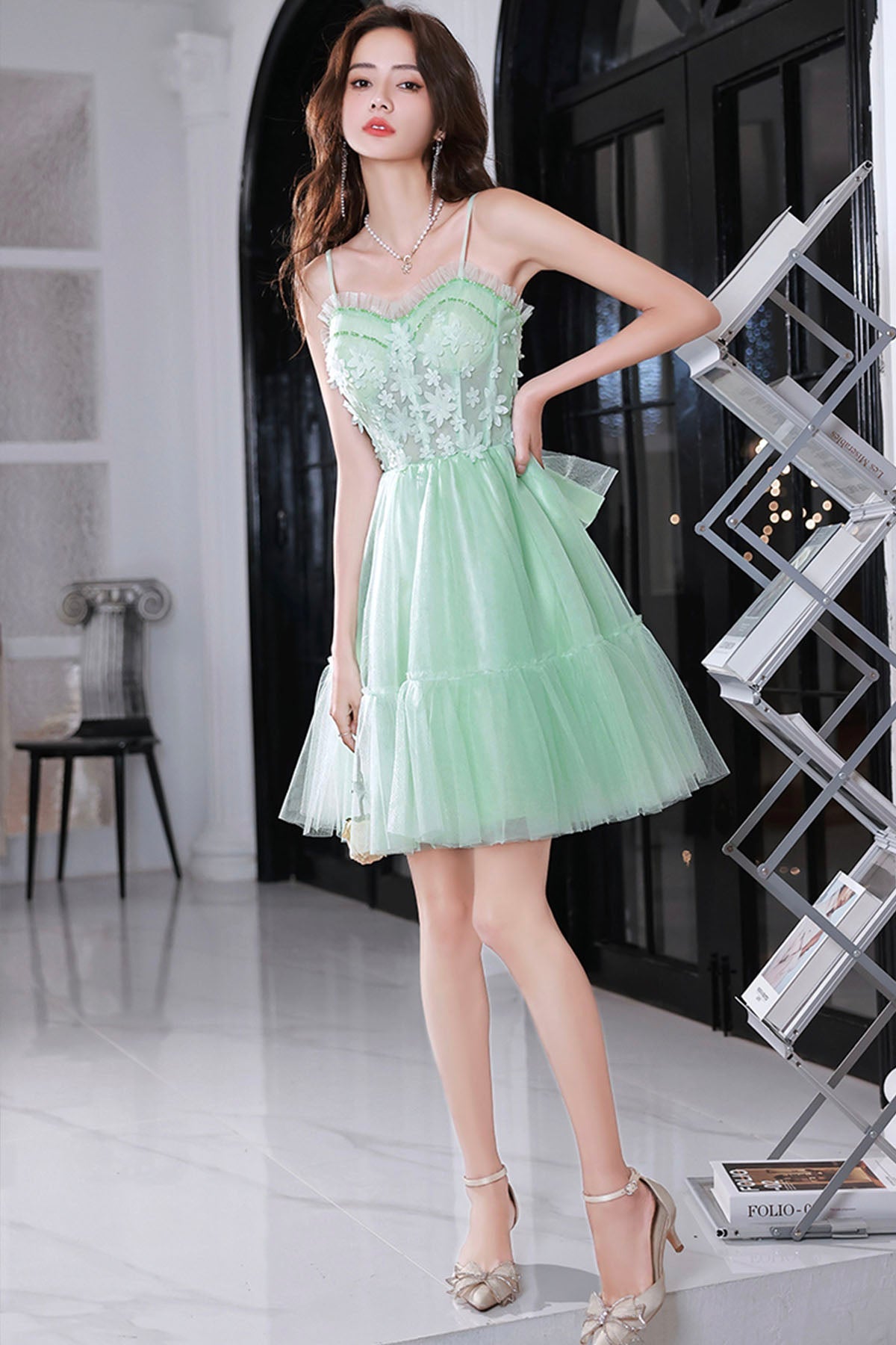 Choose the Mint Green Sweetheart Tulle Lace Straps Homecoming Dress for a memorable and stylish entrance. It's a perfect blend of sweetness and elegance, making you stand out at your event.