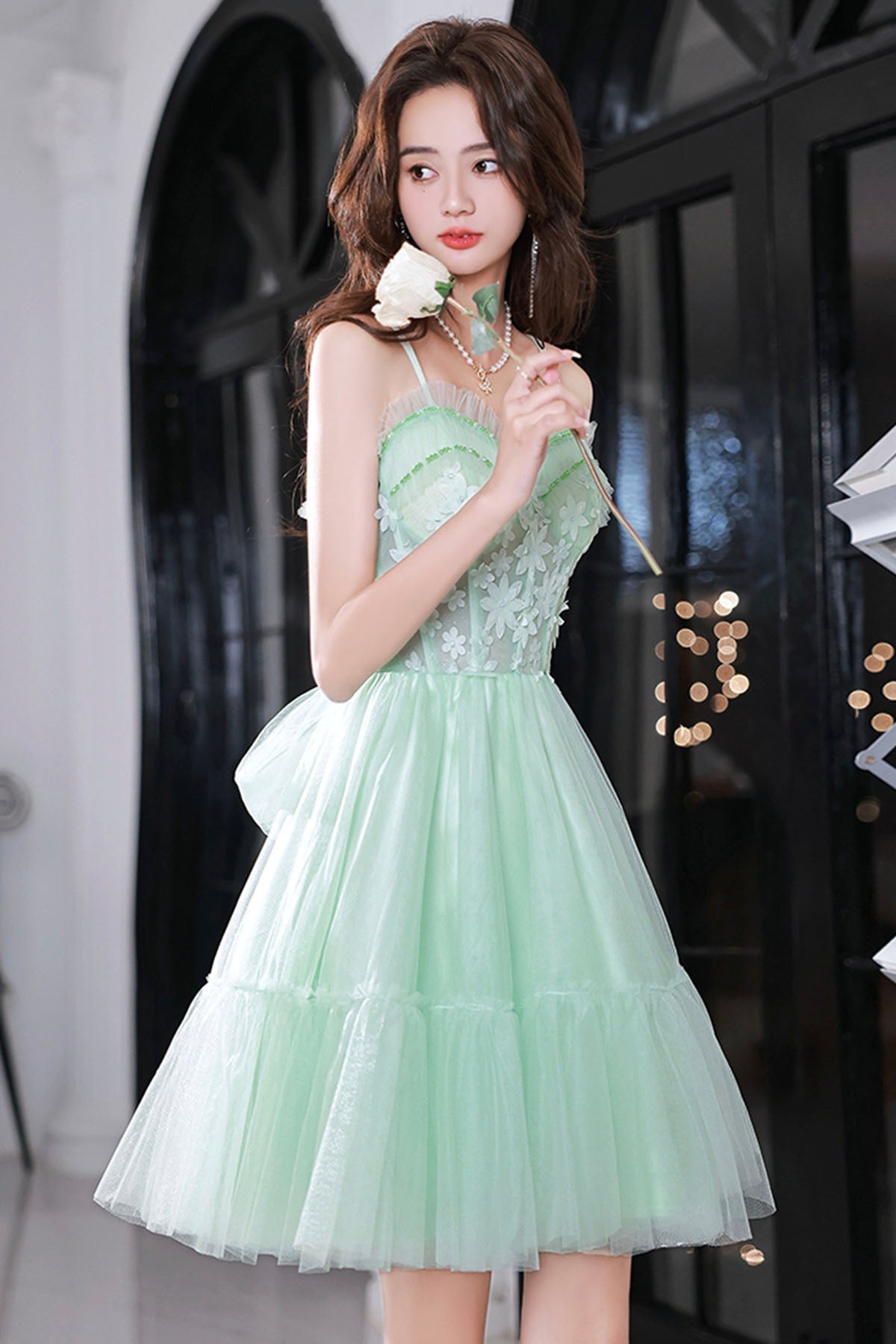 Mint Green Sweetheart Tulle Lace Straps Homecoming Dress, Green Prom Dress