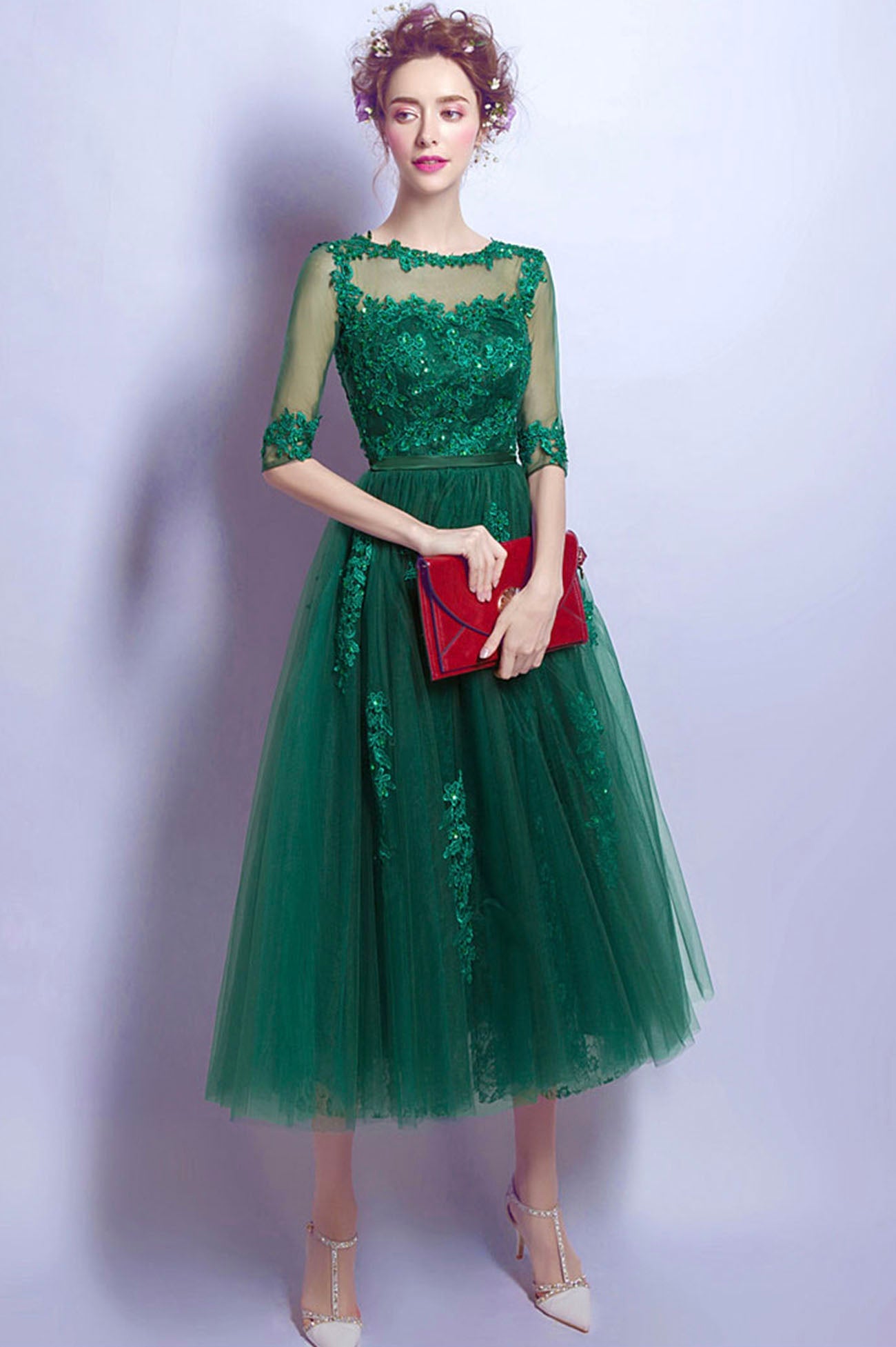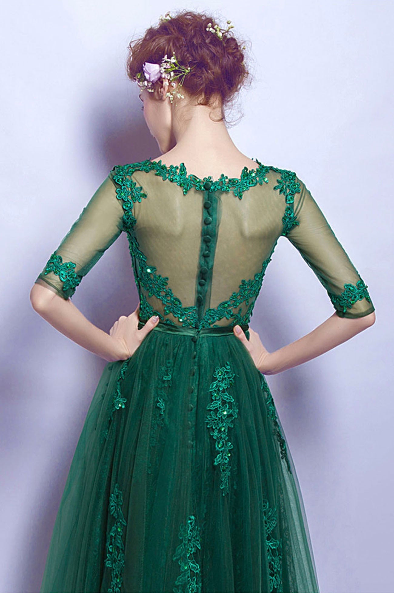 The Green Tulle and Lace Short Homecoming Dress is a delightful choice for your special event. Its A-line silhouette, combined with the tulle and lace, creates a charming and stylish look.