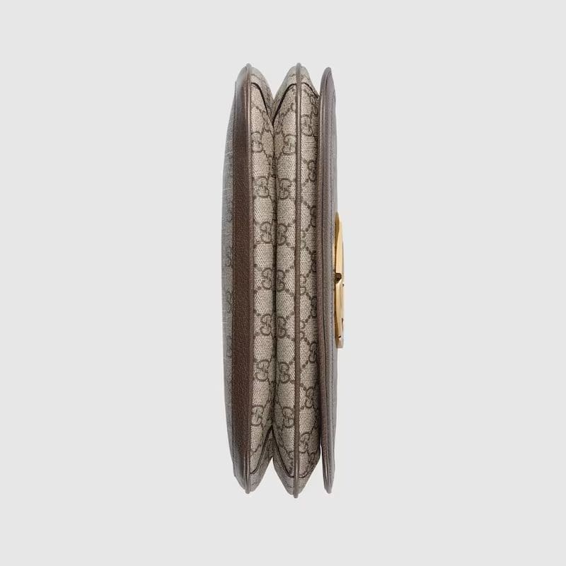 Coming from the Houseās archives, a geometrically shaped version of the Interlocking G logo comes to the fore. The gold-toned hardware adds a defined vintage feel to the style, enriching the design with a timeless feelāmirroring the Hollywood glamour that shaped the fashion show. The GG Supreme canvas top handle bag is completed by two interchangeable straps.