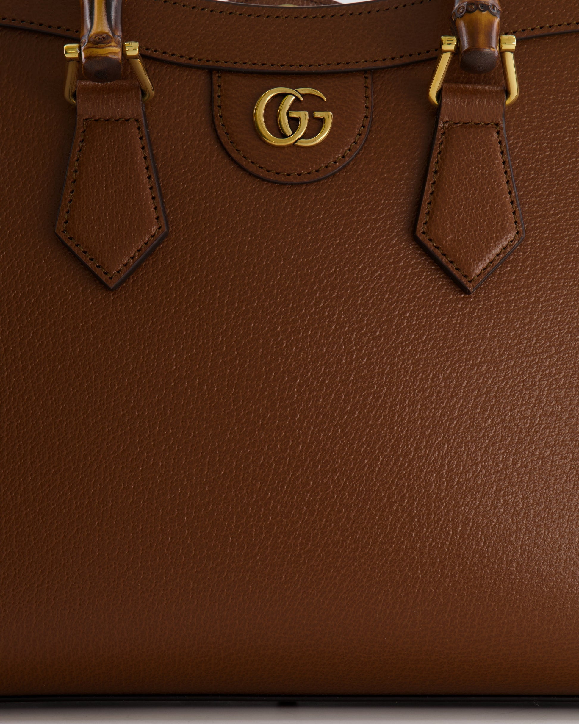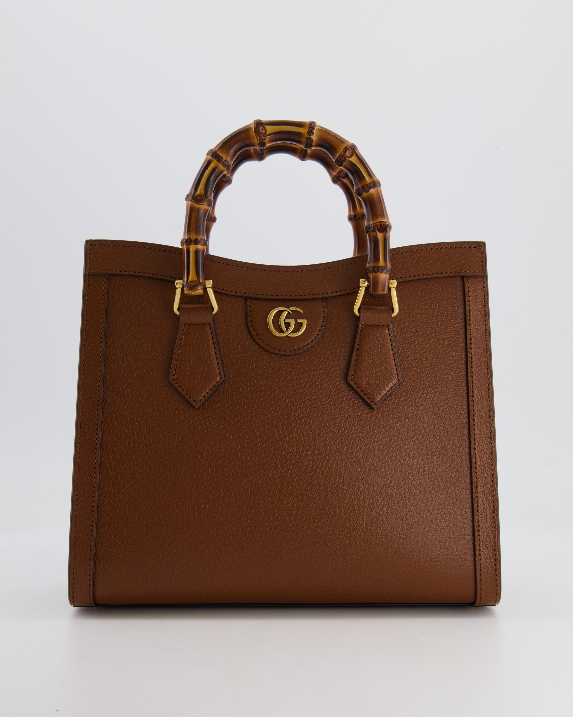 Gucci Brown Diana Medium Tote Leather Bag with Shiny Antique Gold Hardware & Bamboo Handle RRP £3,170