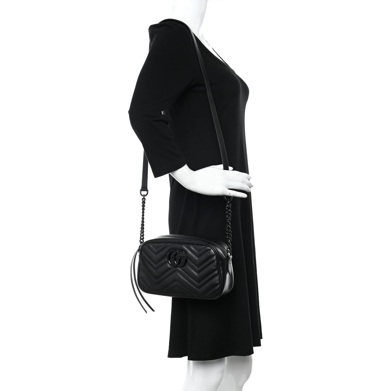 This is an Replica GUCCI Calfskin Matelasse Monochrome Small GG Marmont Chain Shoulder Bag in Black. This shoulder bag is crafted of smooth and supple calfskin leather in black. This bag features a black hardware chain and leather shoulder strap and a black Gucci GG logo on the front. The top zipper opens to a black fabric interior with a leather patch pocket.