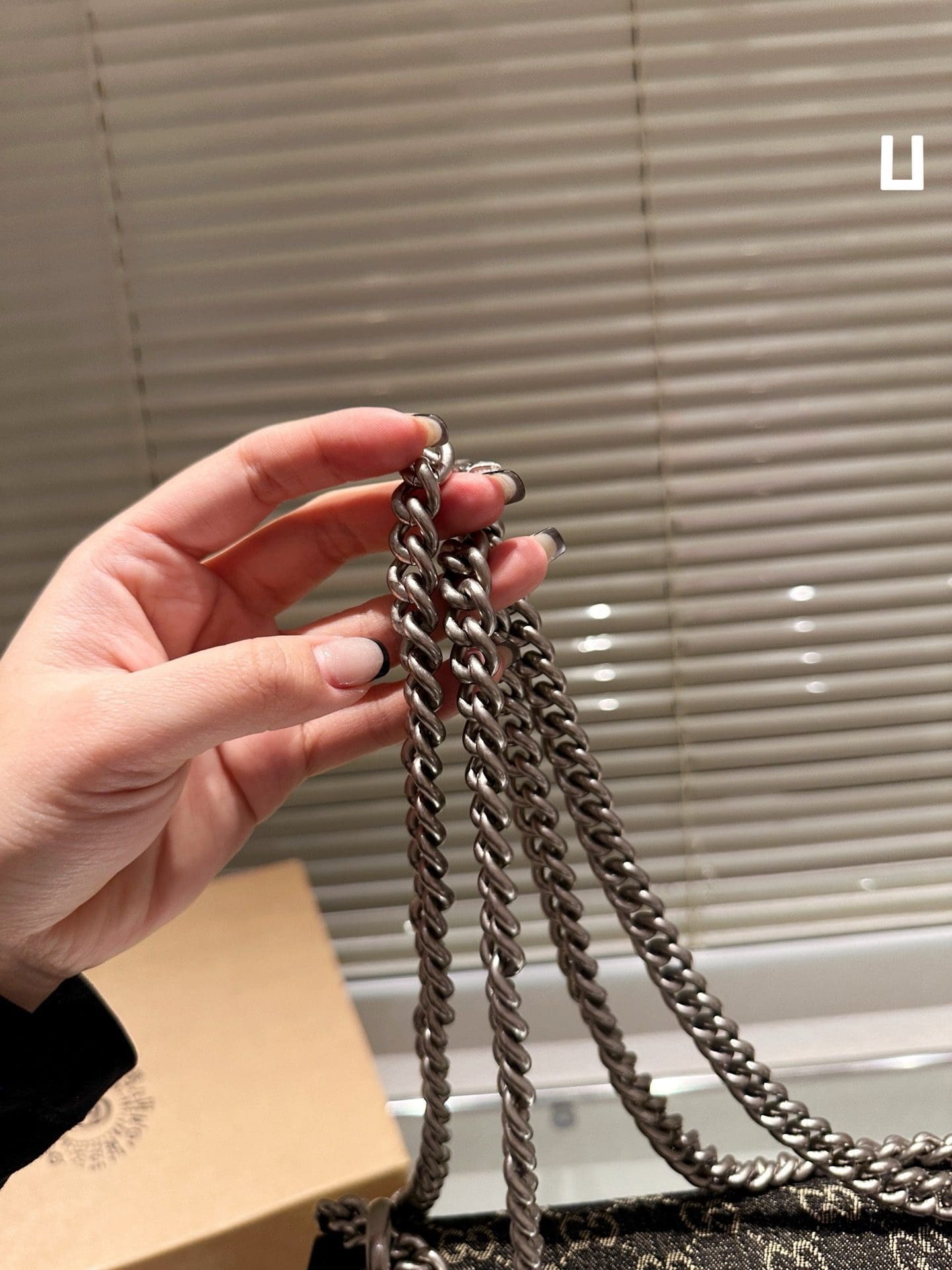 Design details: Black, tiger logo detail, G jacquard pattern, main compartment, press-button flap, adjustable shoulder strap.