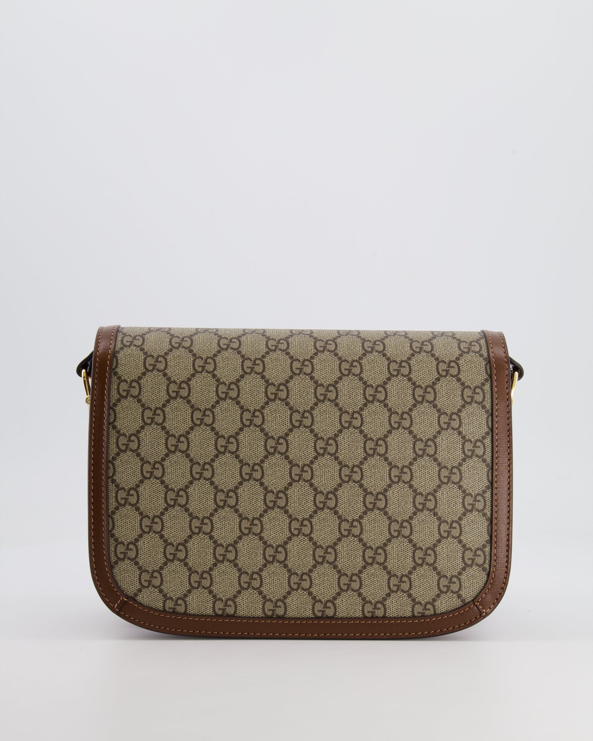 Gucci Horsebit 1955 Medium Shoulder Bag in Beige/Dark Brown GG Supreme Monogram Canvas & Brown Leather Trim with Gold Hardware RRP £2,400