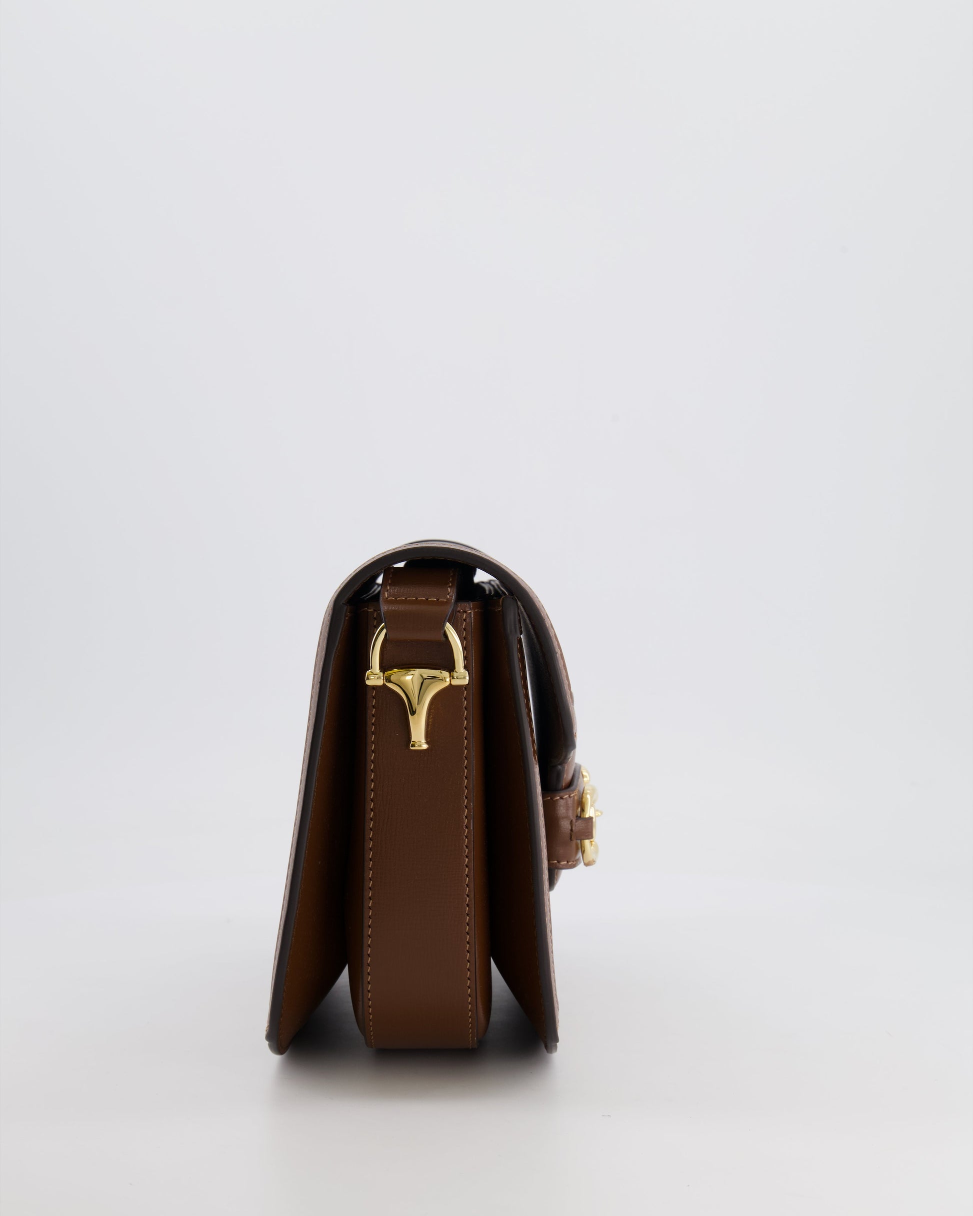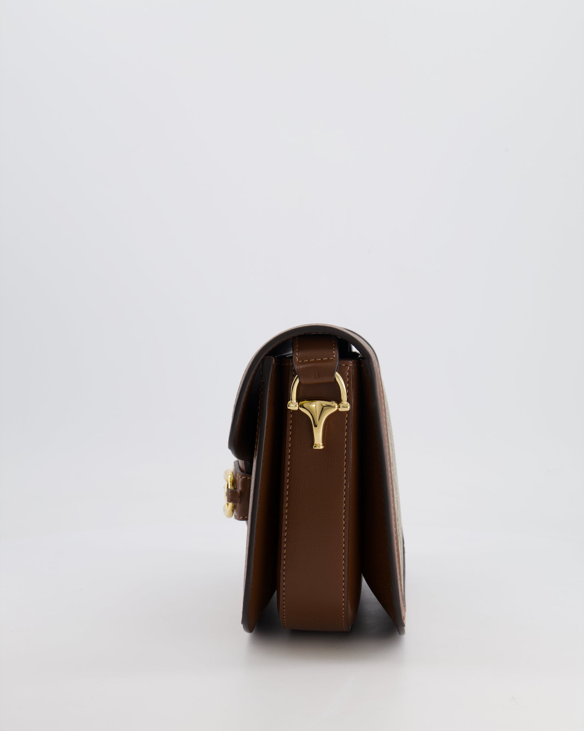 Gucci Horsebit 1955 Medium Shoulder Bag in Beige/Dark Brown GG Supreme Monogram Canvas & Brown Leather Trim with Gold Hardware RRP £2,400
