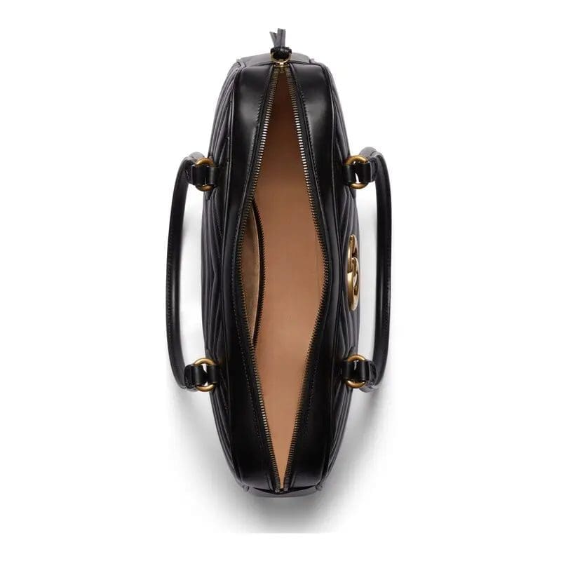 For pre-fall, the GG Marmont collection reinterprets the classic quilted V-shaped leather in new shapes and sizes. This medium tote is crafted in black, with gold-tone hardware to complement the sleek silhouette.