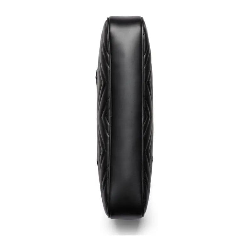 - Black quilted V-shaped leather