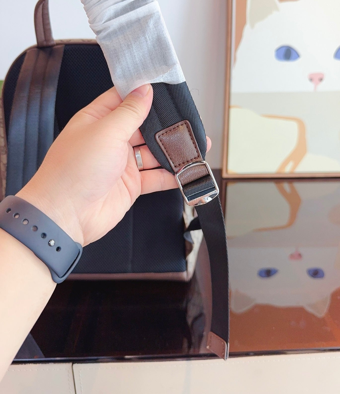In keeping with the timeless feel that permeates the latest luggage selection, this backpack appears in the classic beige and ebony GG Supreme. The canvas has come to the front of each collection decade after decade to become a hallmark of the House. An Interlocking G leather tag completes the design.