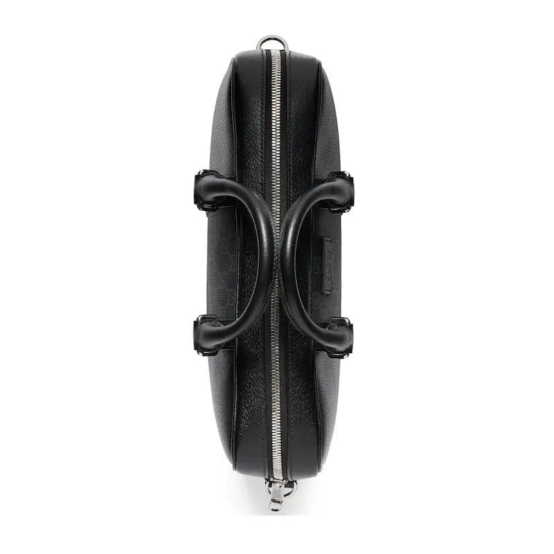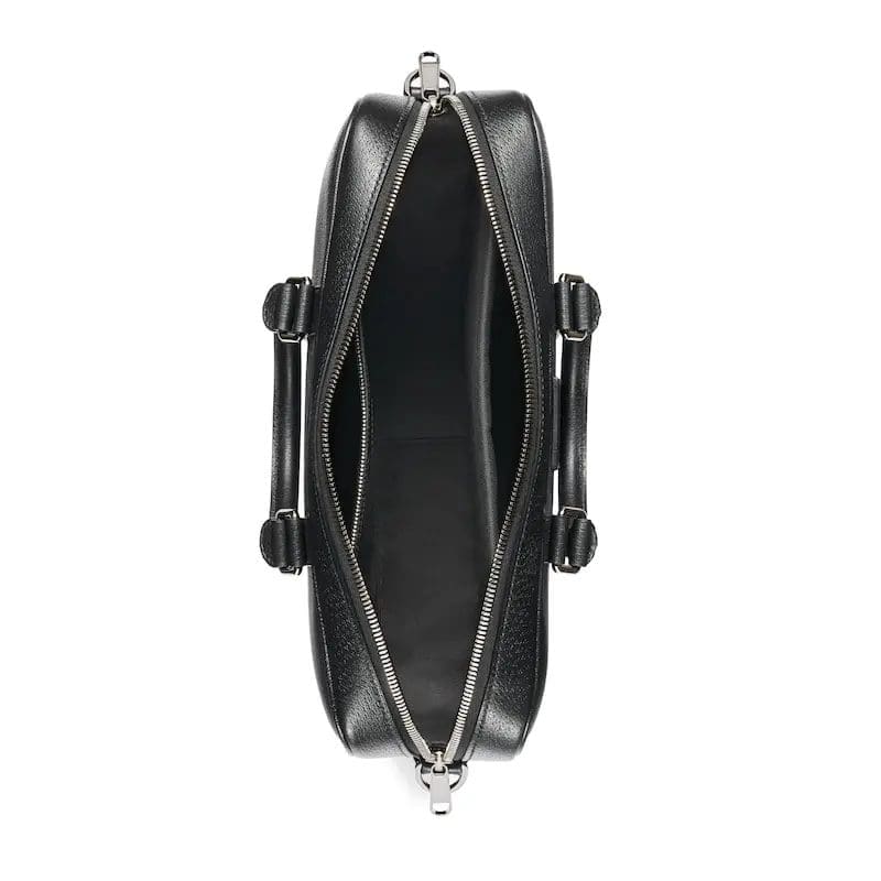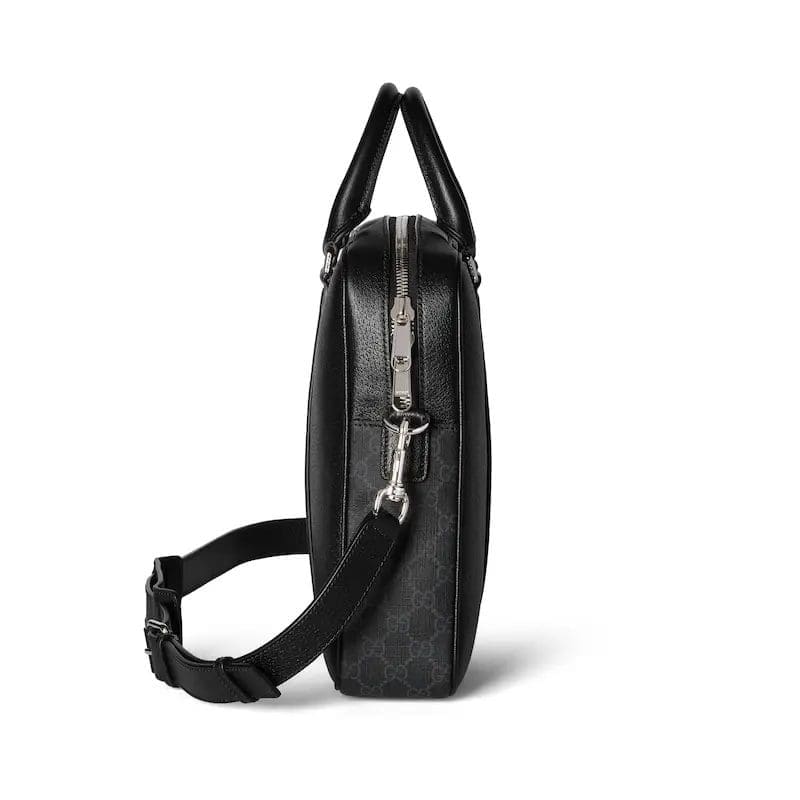 Selected bags such as the mini crossbody, briefcase and tote are updated with practical details. This briefcase is crafted from black leather and GG Supreme canvas and features a laptop compartment and an adjustable shoulder strap. The leather “Gucci Made in Italy” label adds an elegant touch of brand identity to the design.