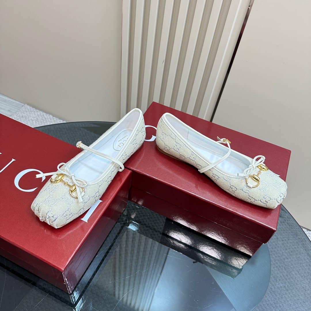 GUCCI WOMEN’S HORSEBIT BALLET FLAT WHITE