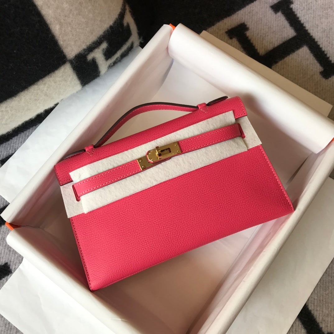 H MINI KELLY POCHETTE GOLD TONED HARDWARE PINK 22CM