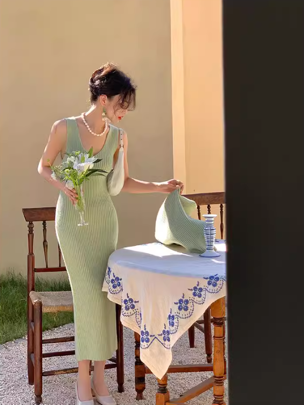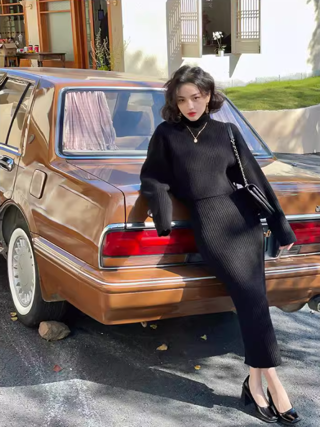 Half turtleneck two-piece knitted sweater dress ED0225