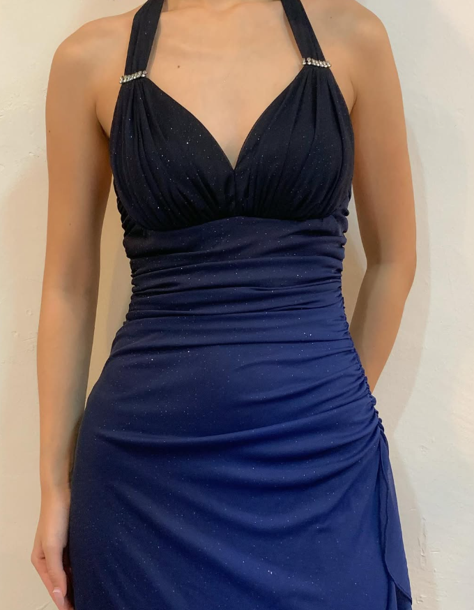 Halter Ombre Navy Blue Long Chiffon Prom Dress SH1157