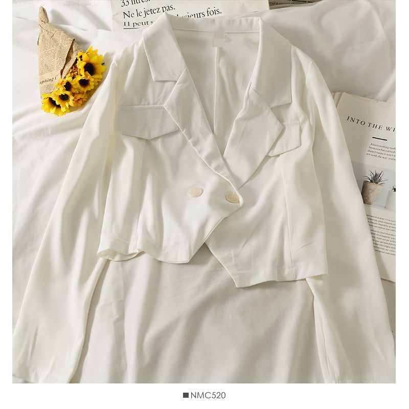 Han Fan short exposed navel two button western style slim cardigan top 2086