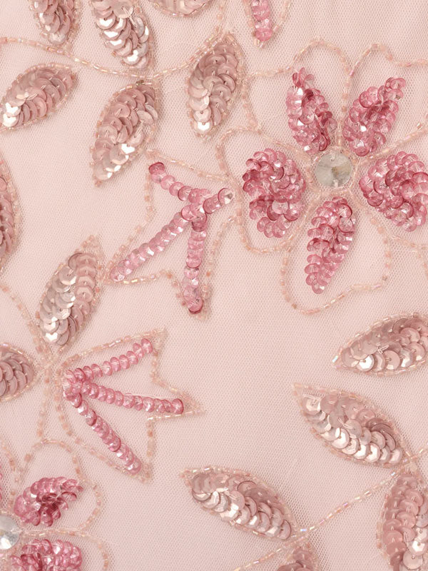 Handmade Beaded Short Sleeve Floral Guided Silk Gowns