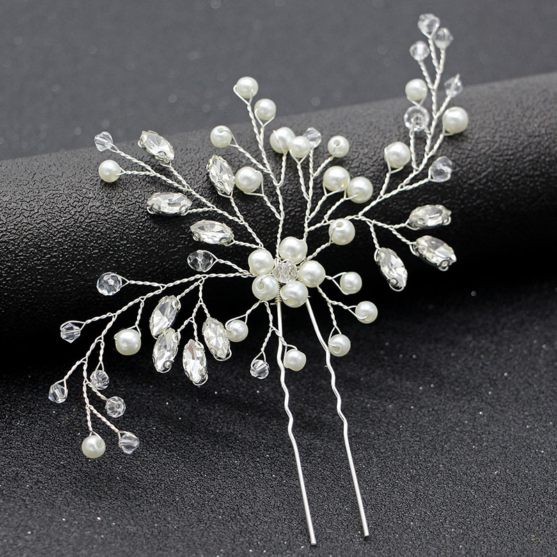 Handmade Pearl Grab and Drill U-Shaped Hair Fork Pin Headwear Hair Accessories Hairpin