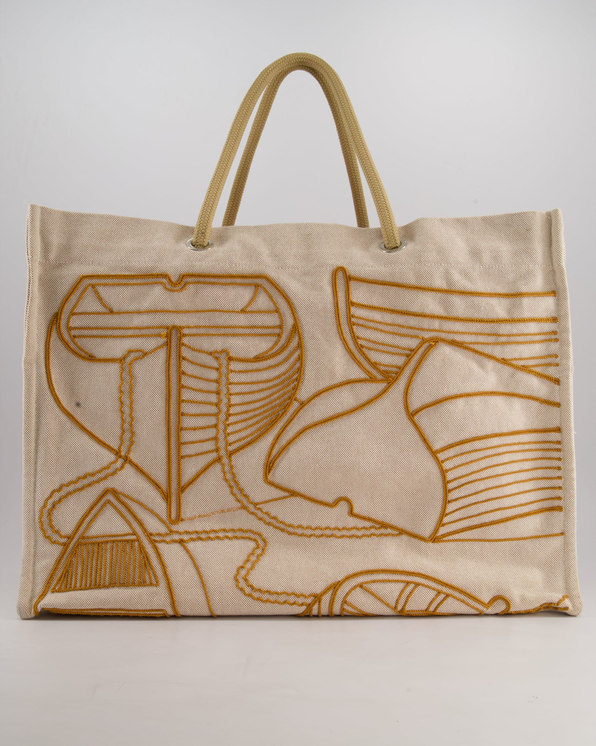Hermes Beige Embroidered Thalassa Beach Tote Bag