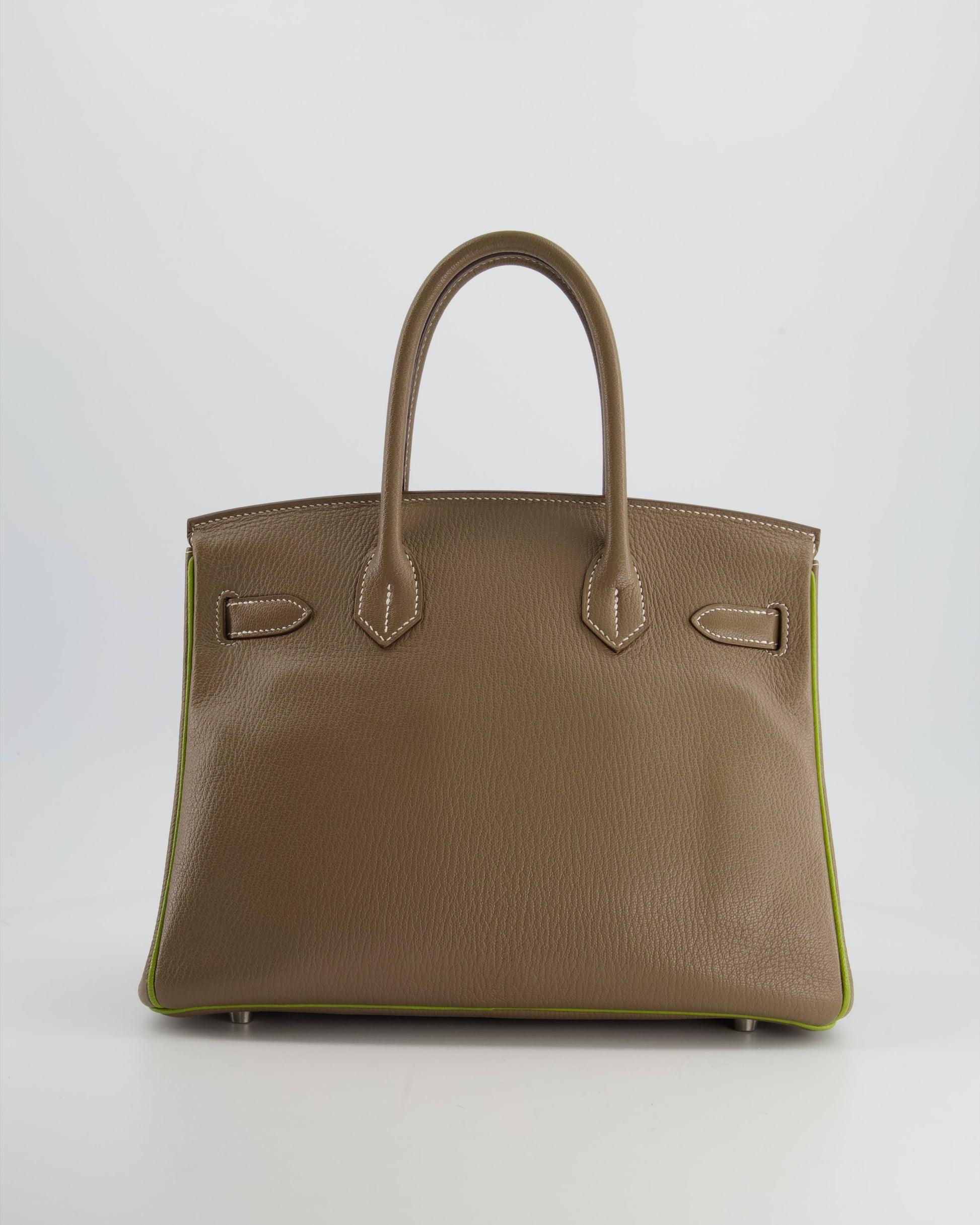 Hermès HSS Birkin Bag 30cm in Etoupe/ Vert Anis Chèvre and Brushed Palladium Hardware