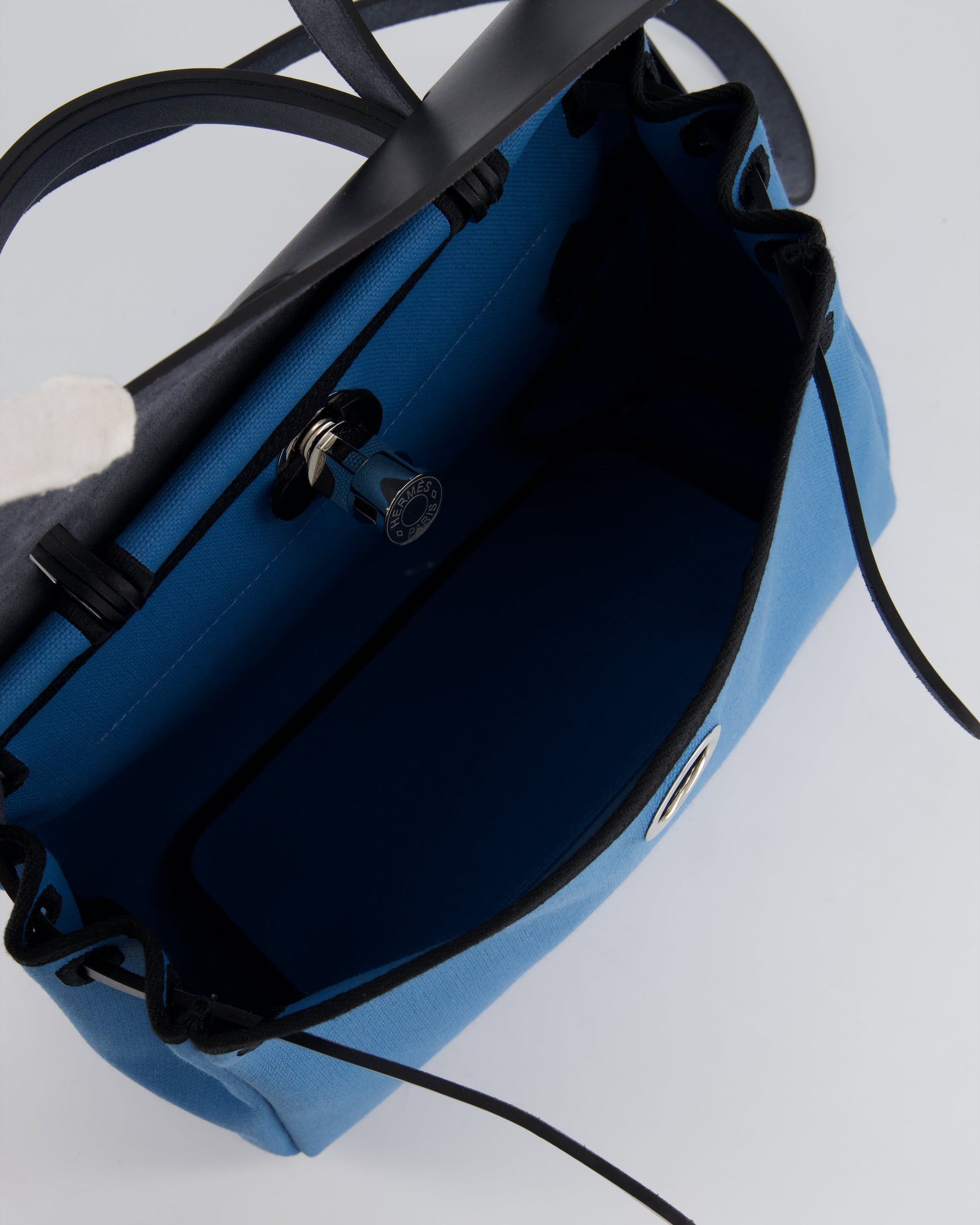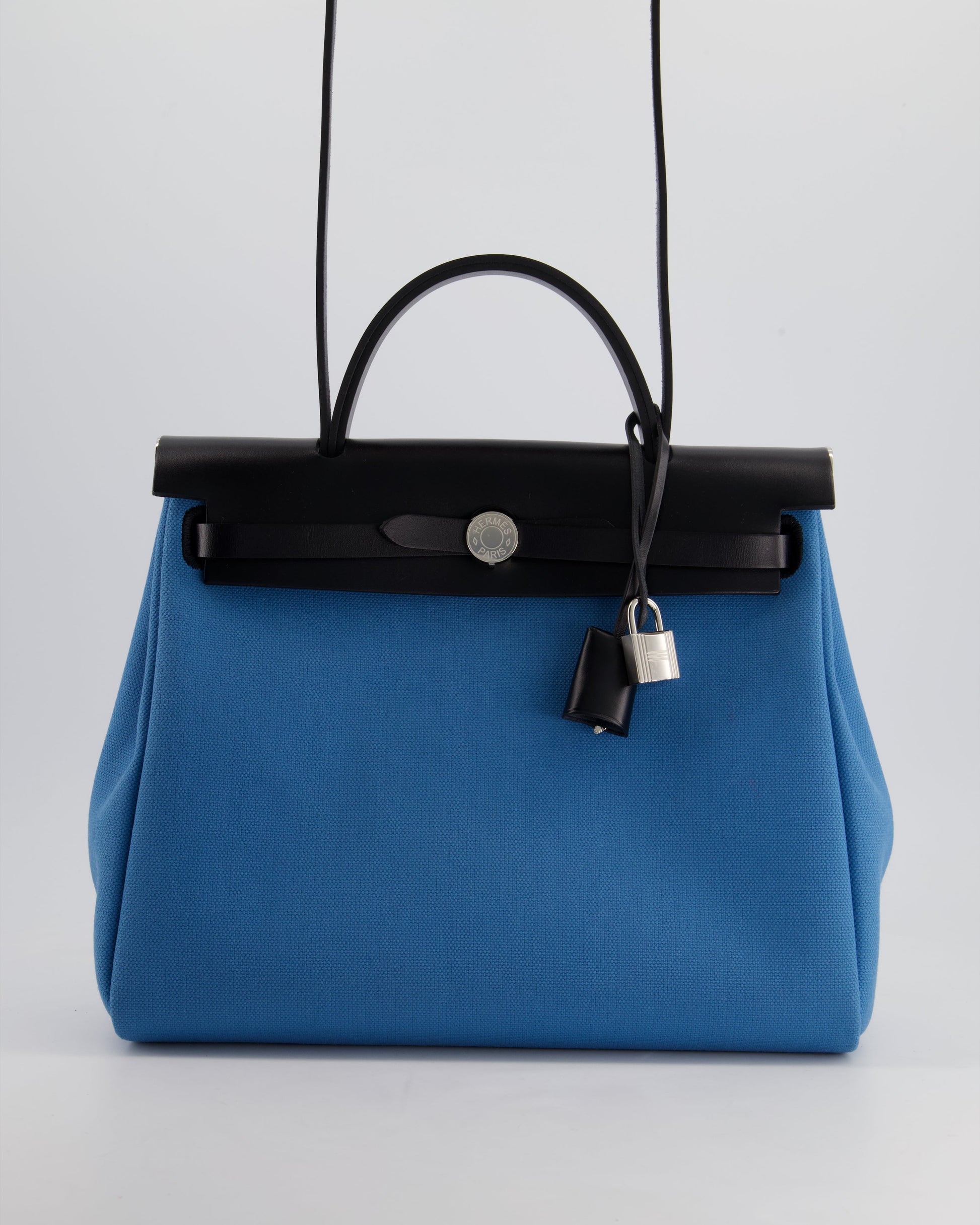 Hermès Herbag 31 Bag in Blue Jean Canvas and Noir Vache Hunter Leather with Palladium Hardware