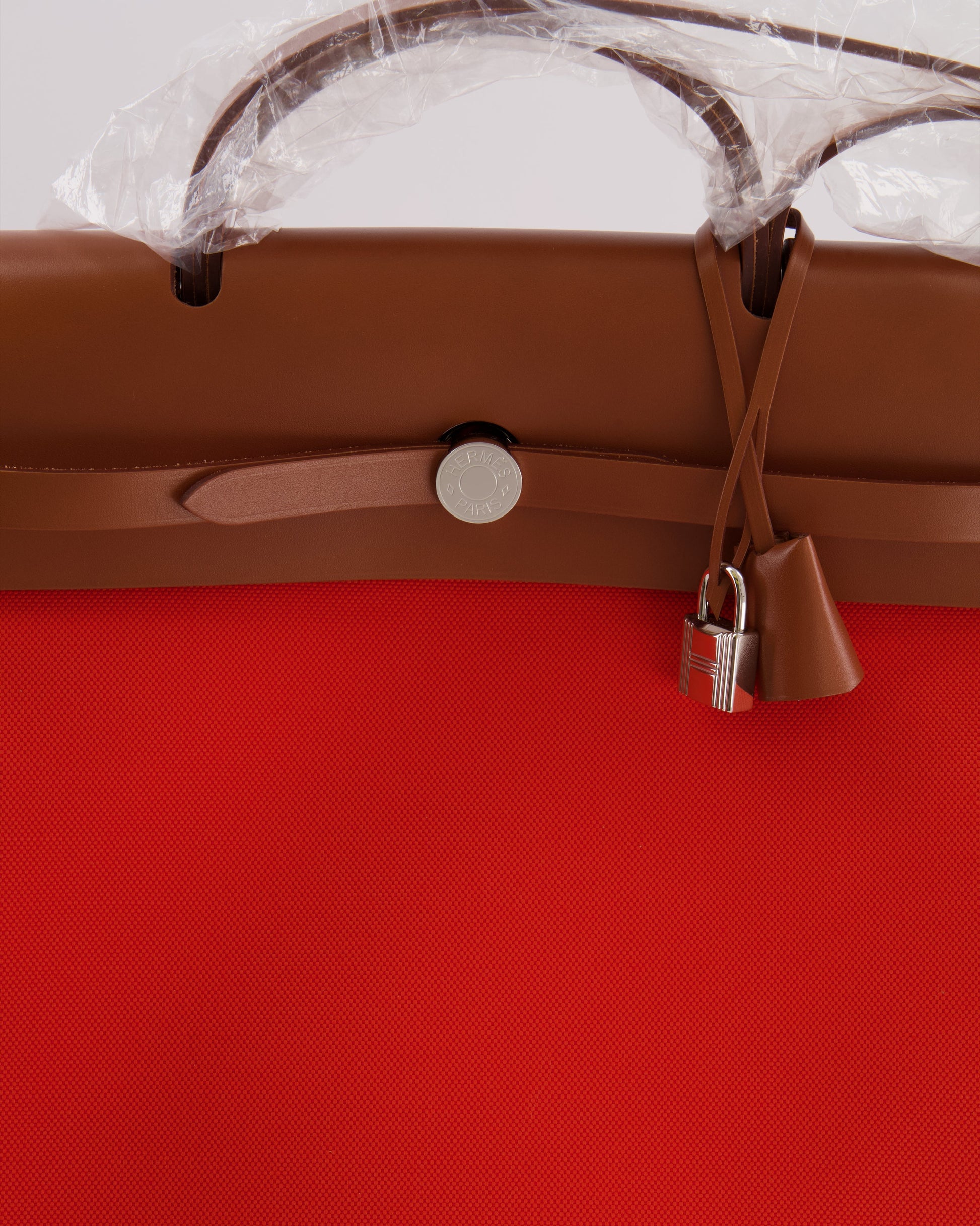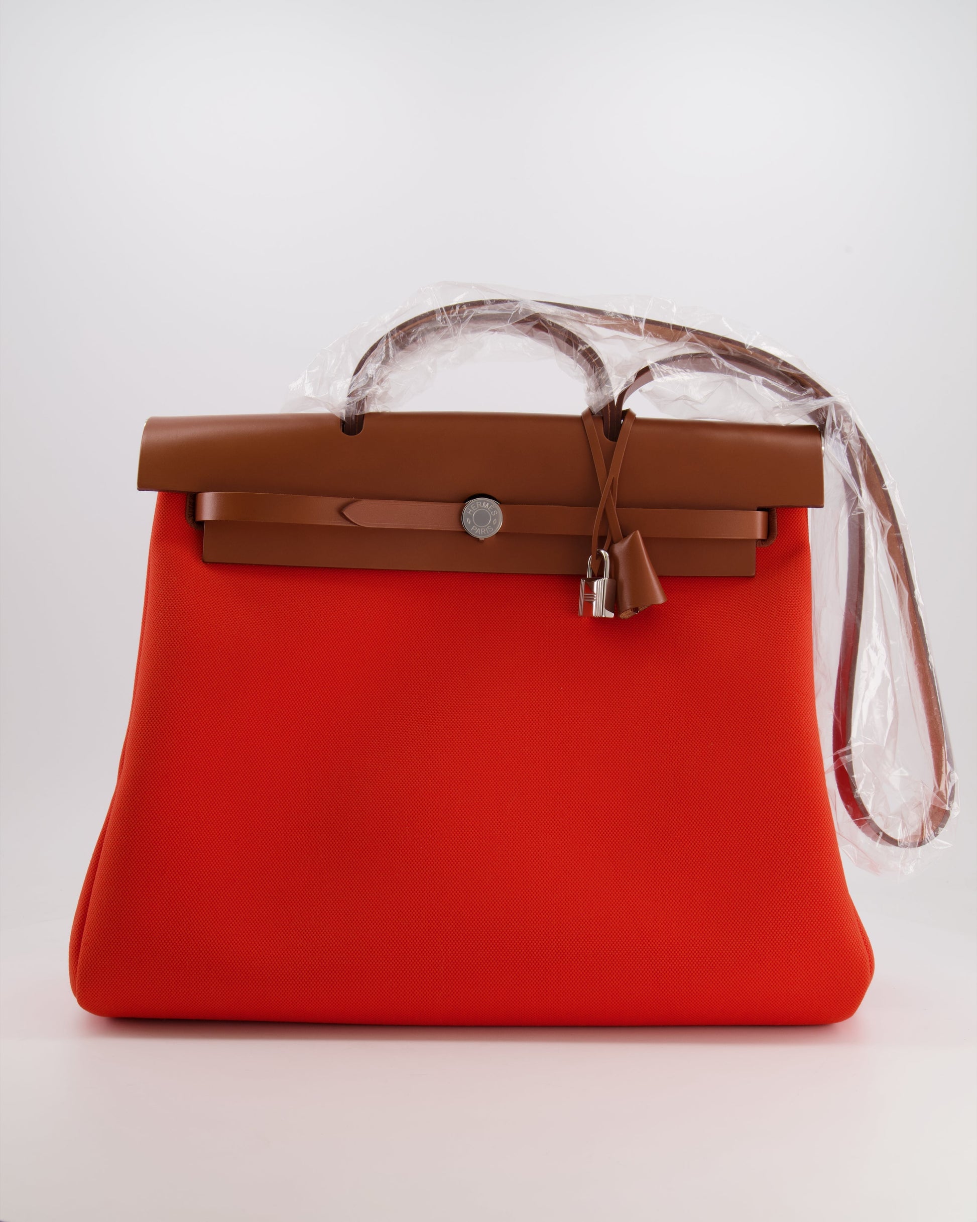 Hermès Herbag 39 in Orange Mecano Toile Canvas and Fauve Vache Hunter Leather with Palladium Hardware