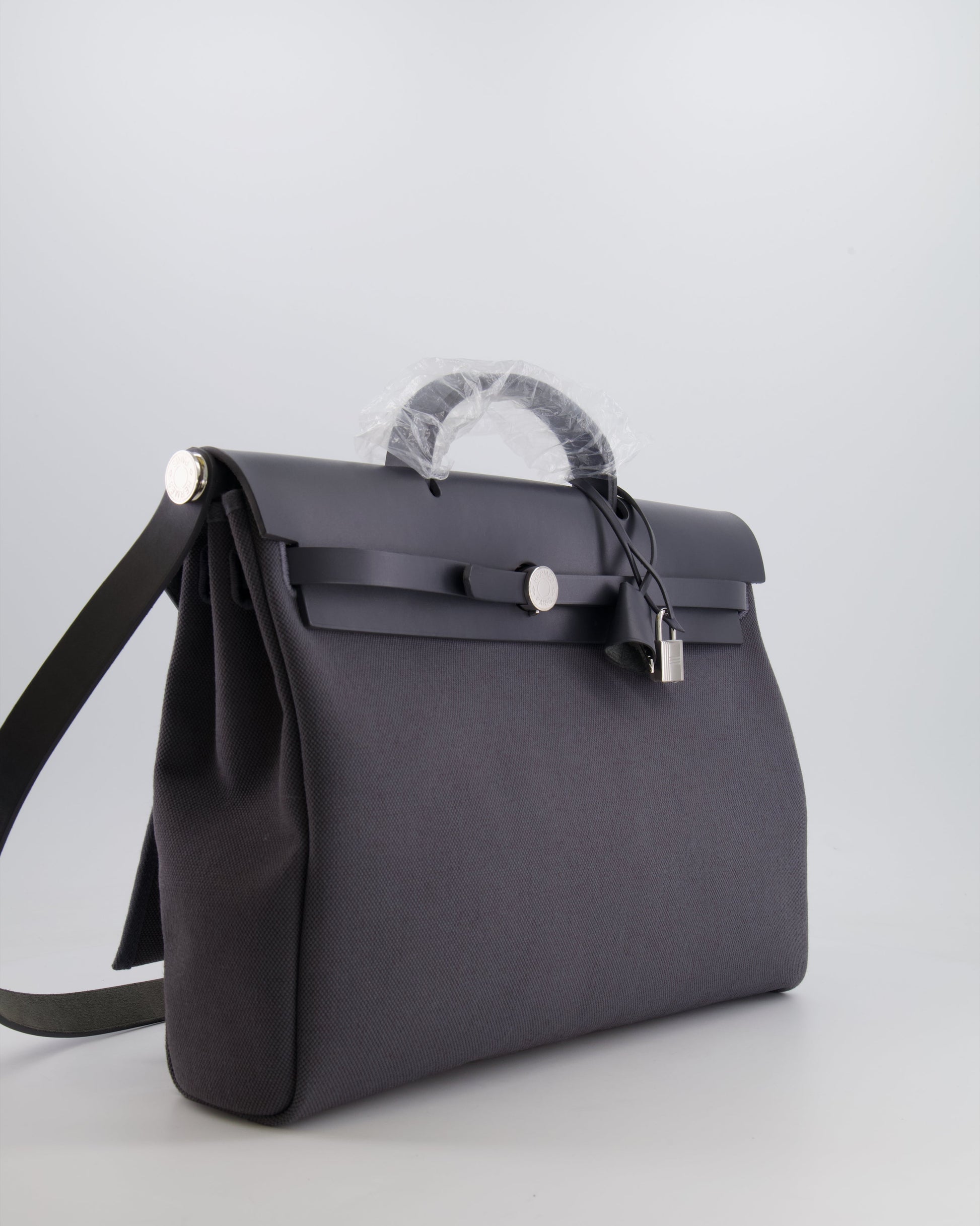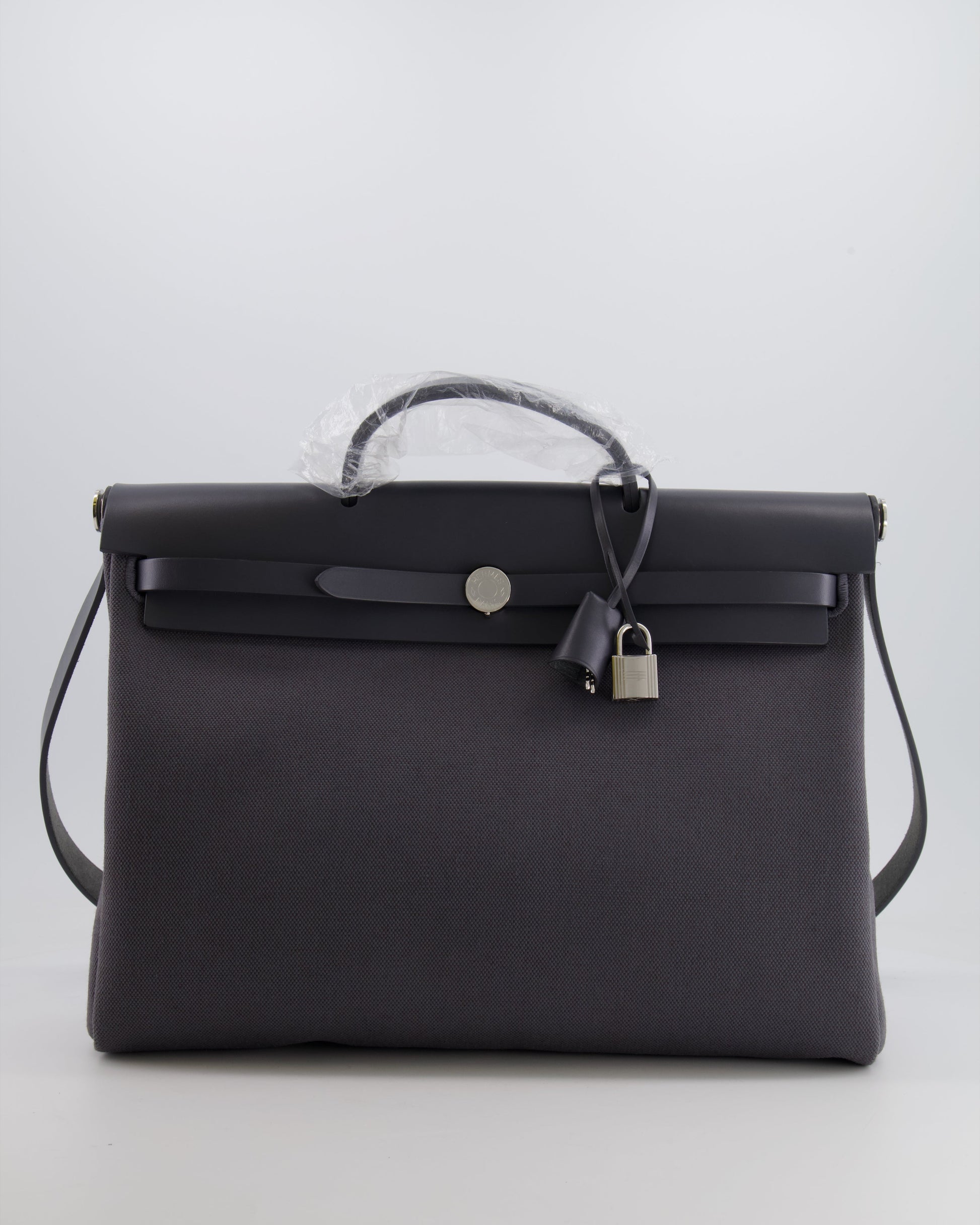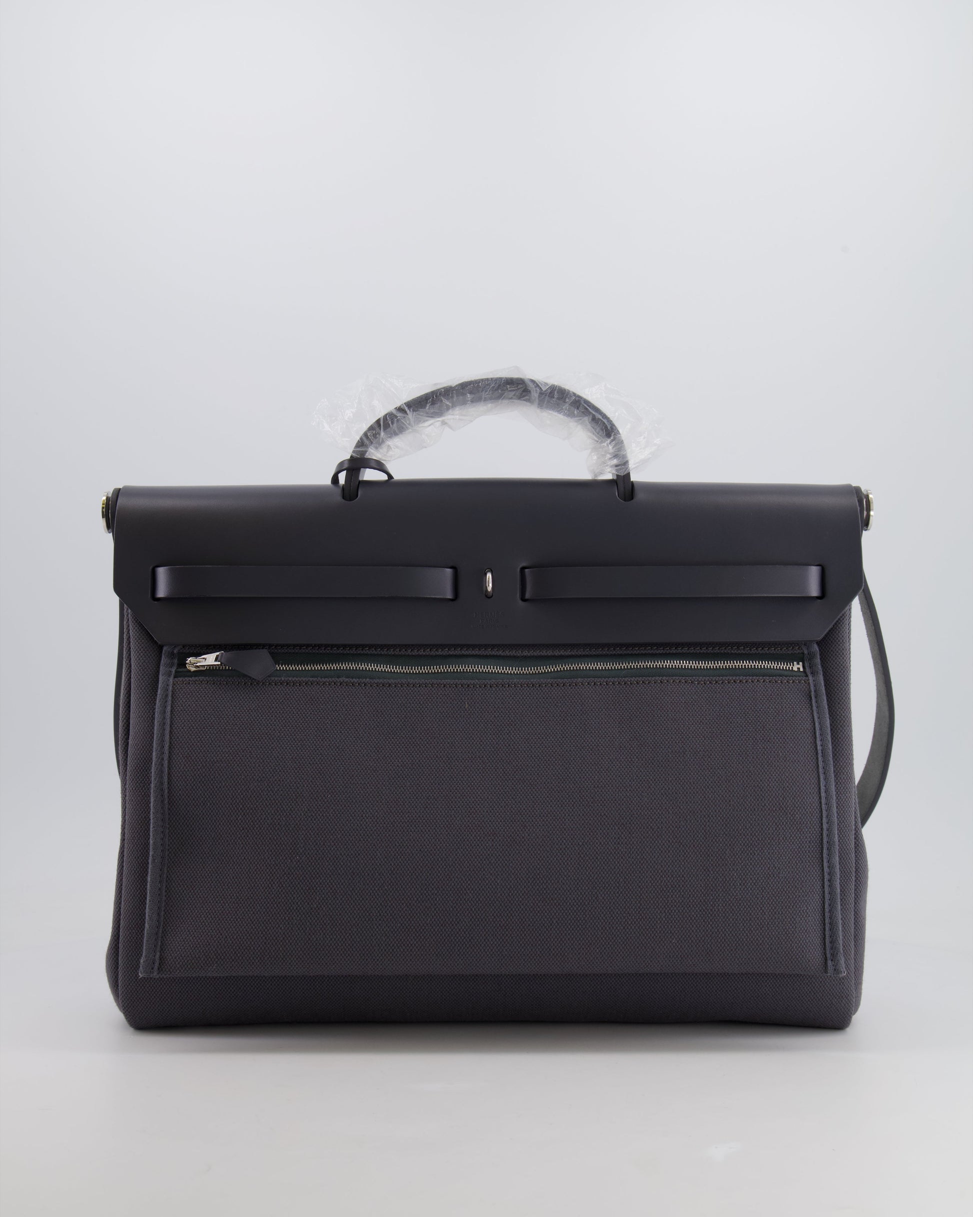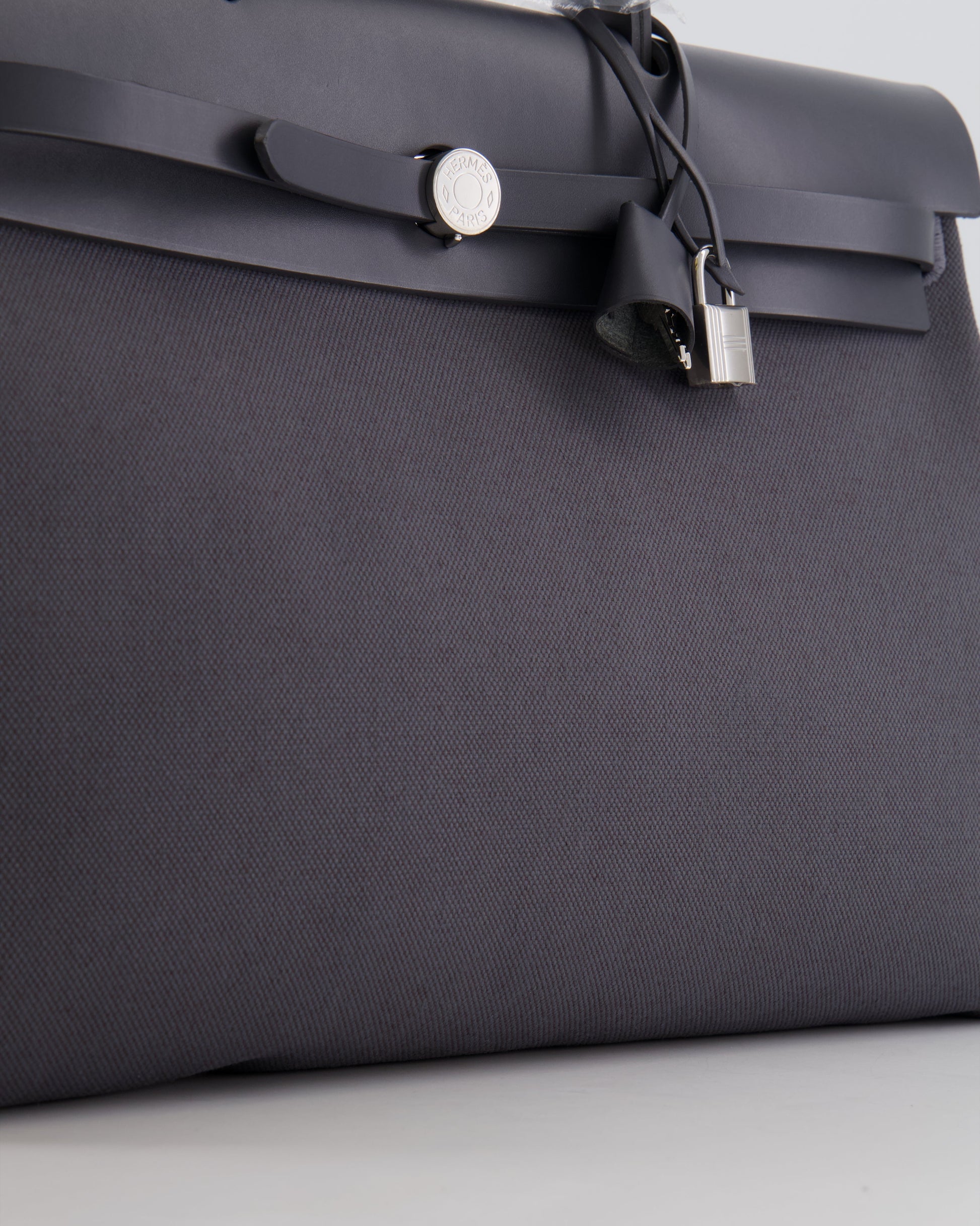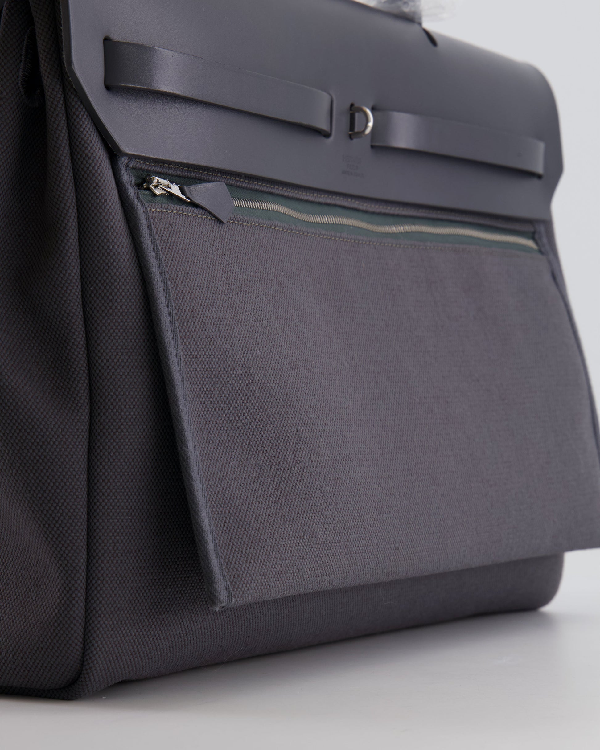 Hermès Herbag 39 Messanger in Ardoise Toile Canvas and Vache Hunter Leather with Palladium Hardware
