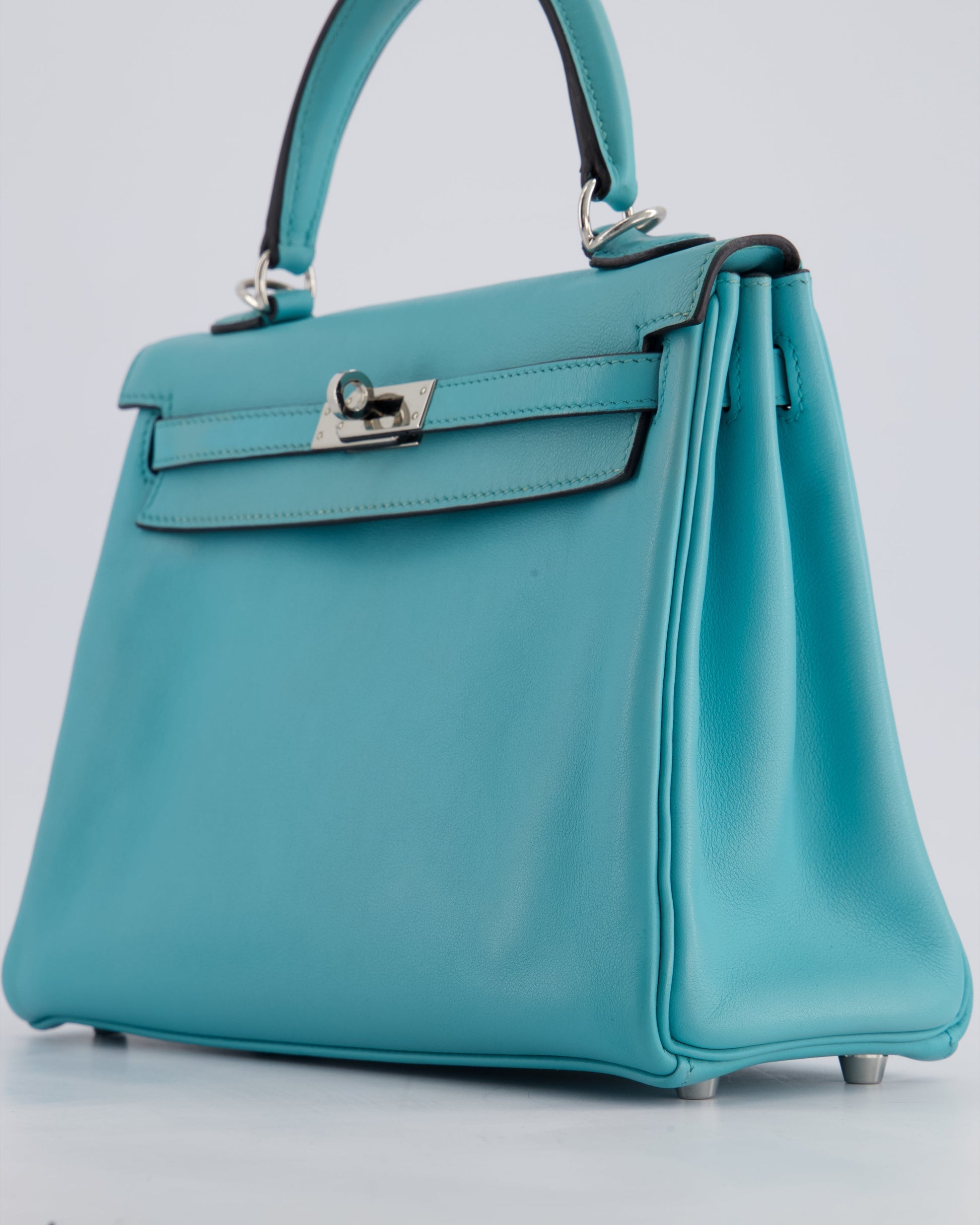 Hermès Kelly 25cm Bag Retourne in Bleu Atoll Swift Leather with Palladium Hardware
