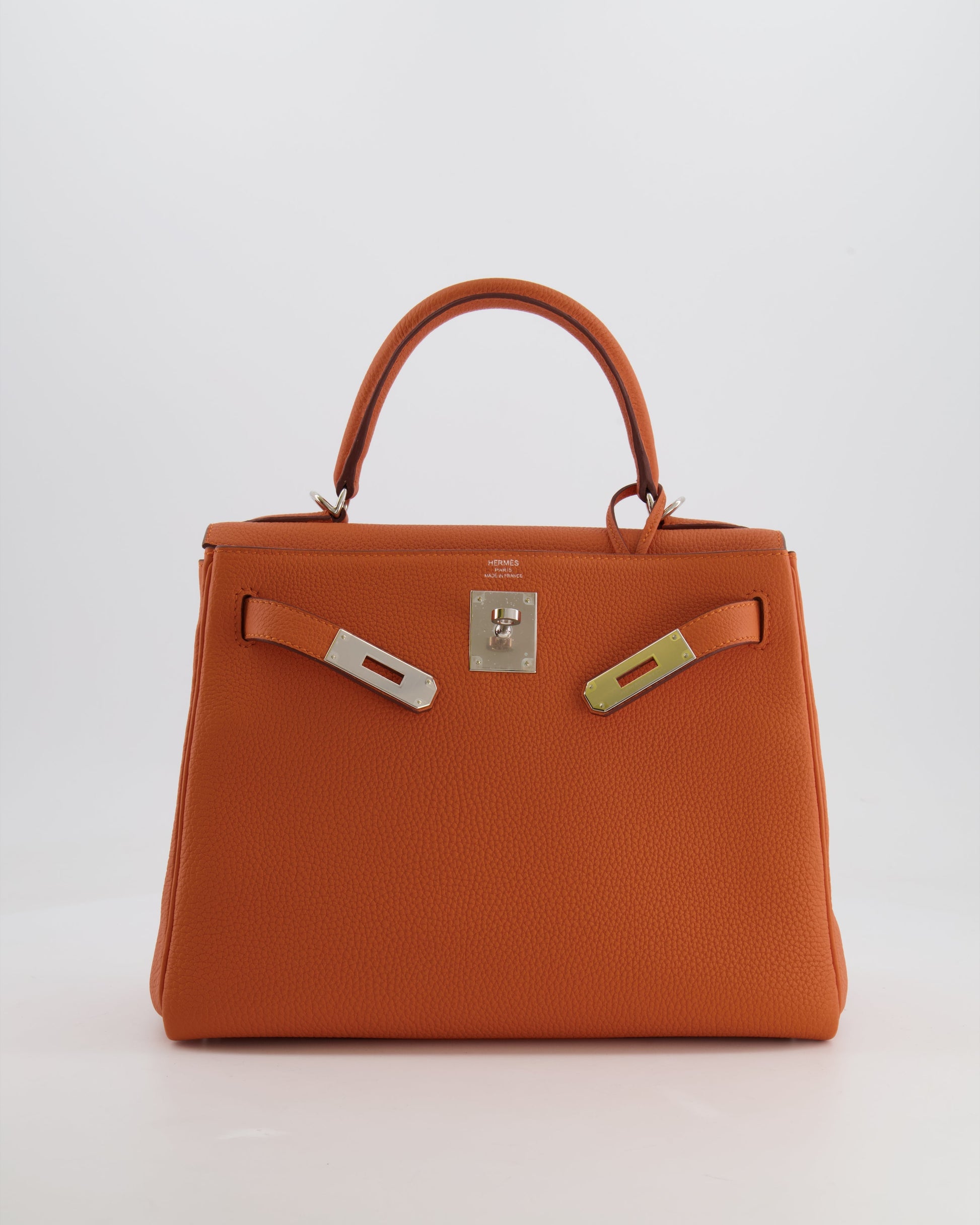 Hermès Kelly 28cm Retourne Bag in Orange Togo Leather with Palladium Hardware