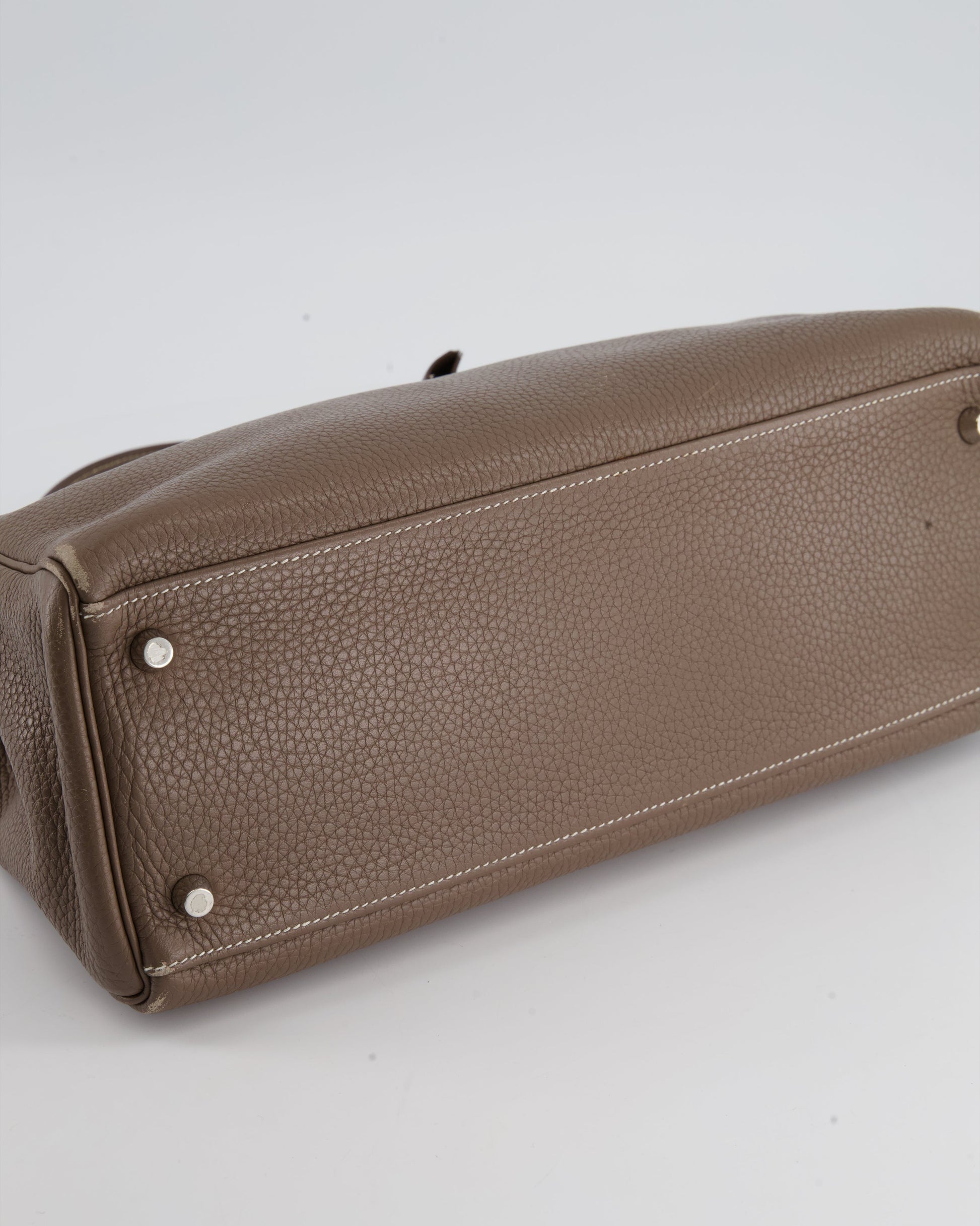 Hermès Kelly Bag 32 Retourne Bag in Etoupe Clemence Leather with Palladium Hardware