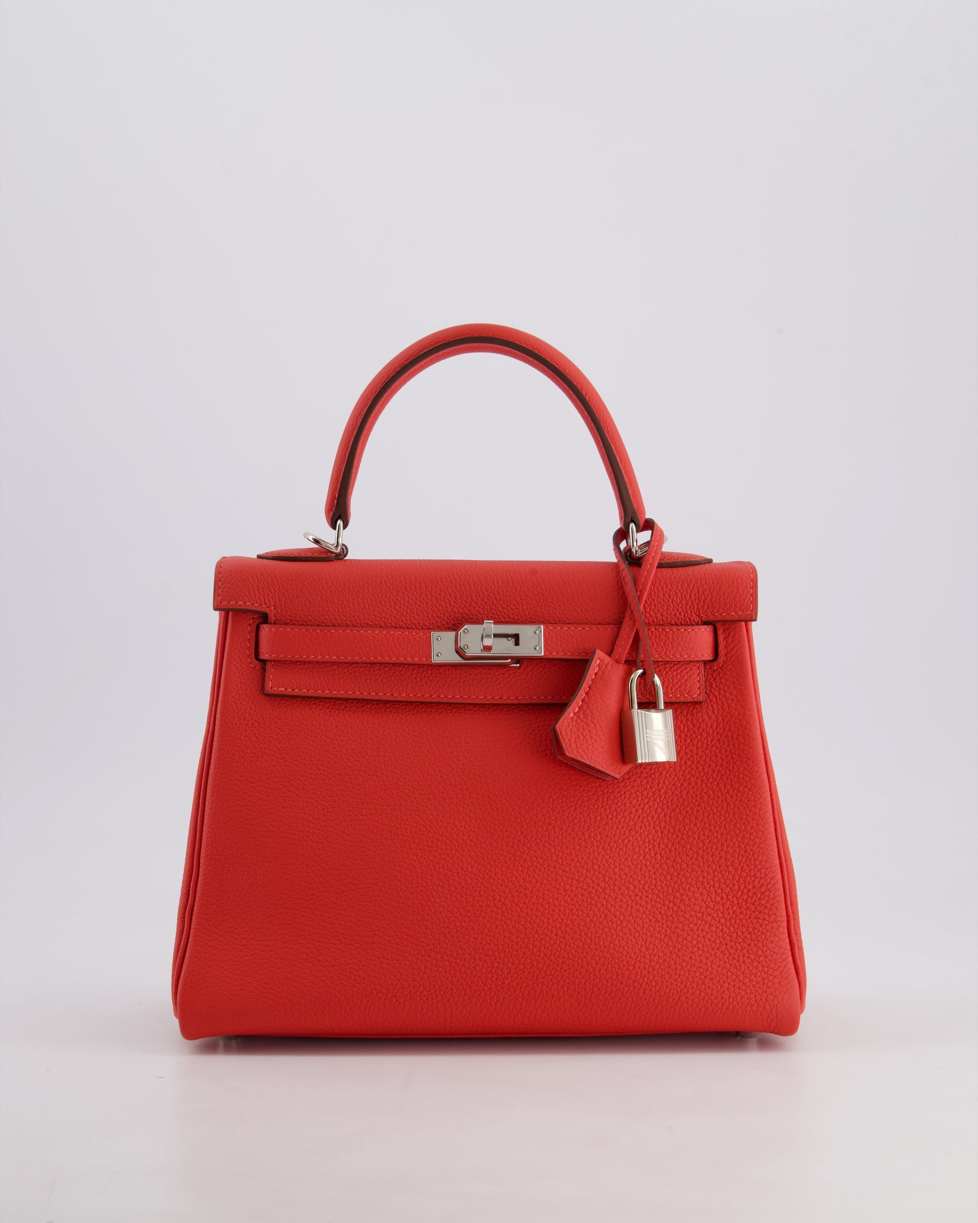 Hermès Kelly Bag 25cm Retourne in Rouge Vif Clemence Leather with Palladium Hardware