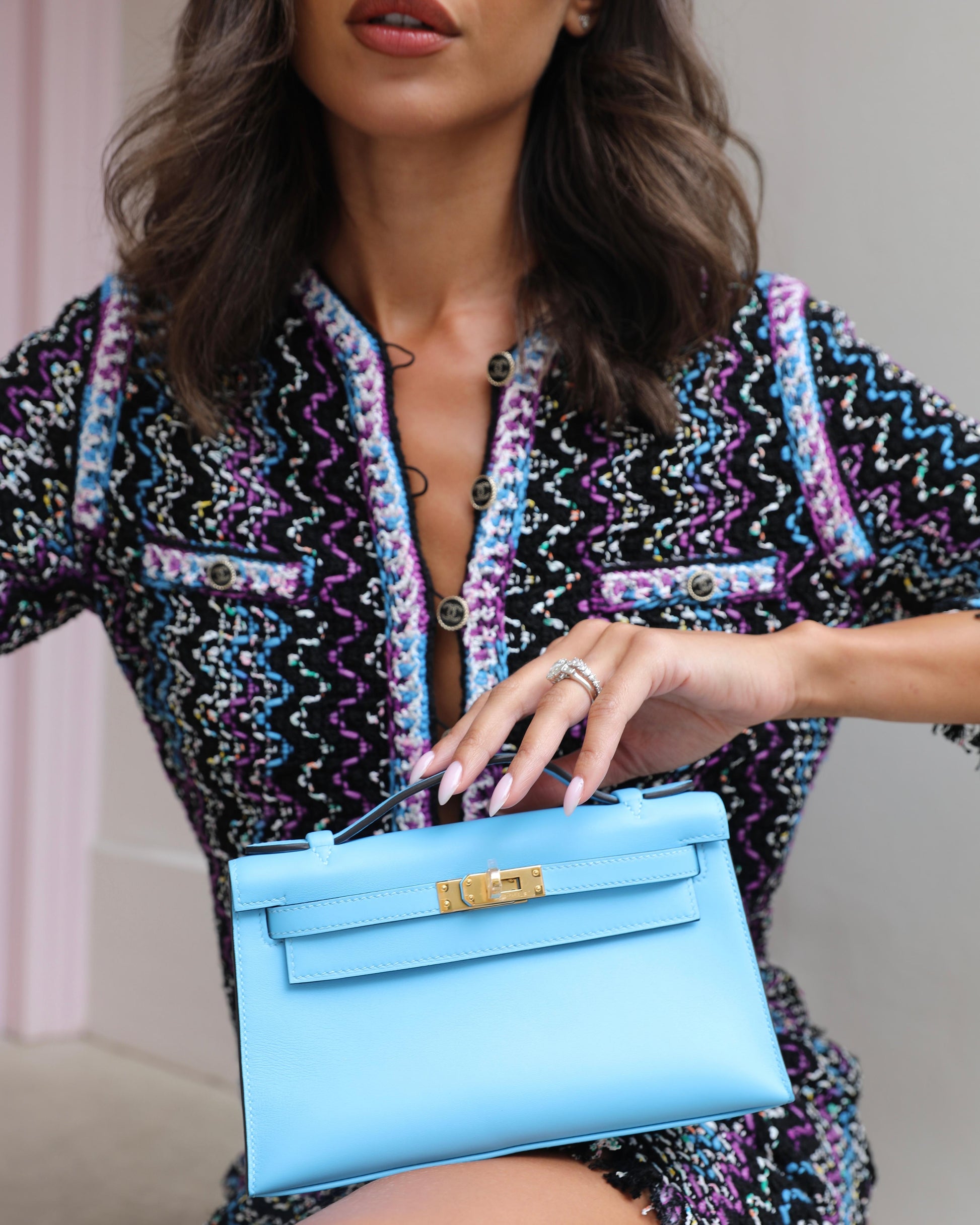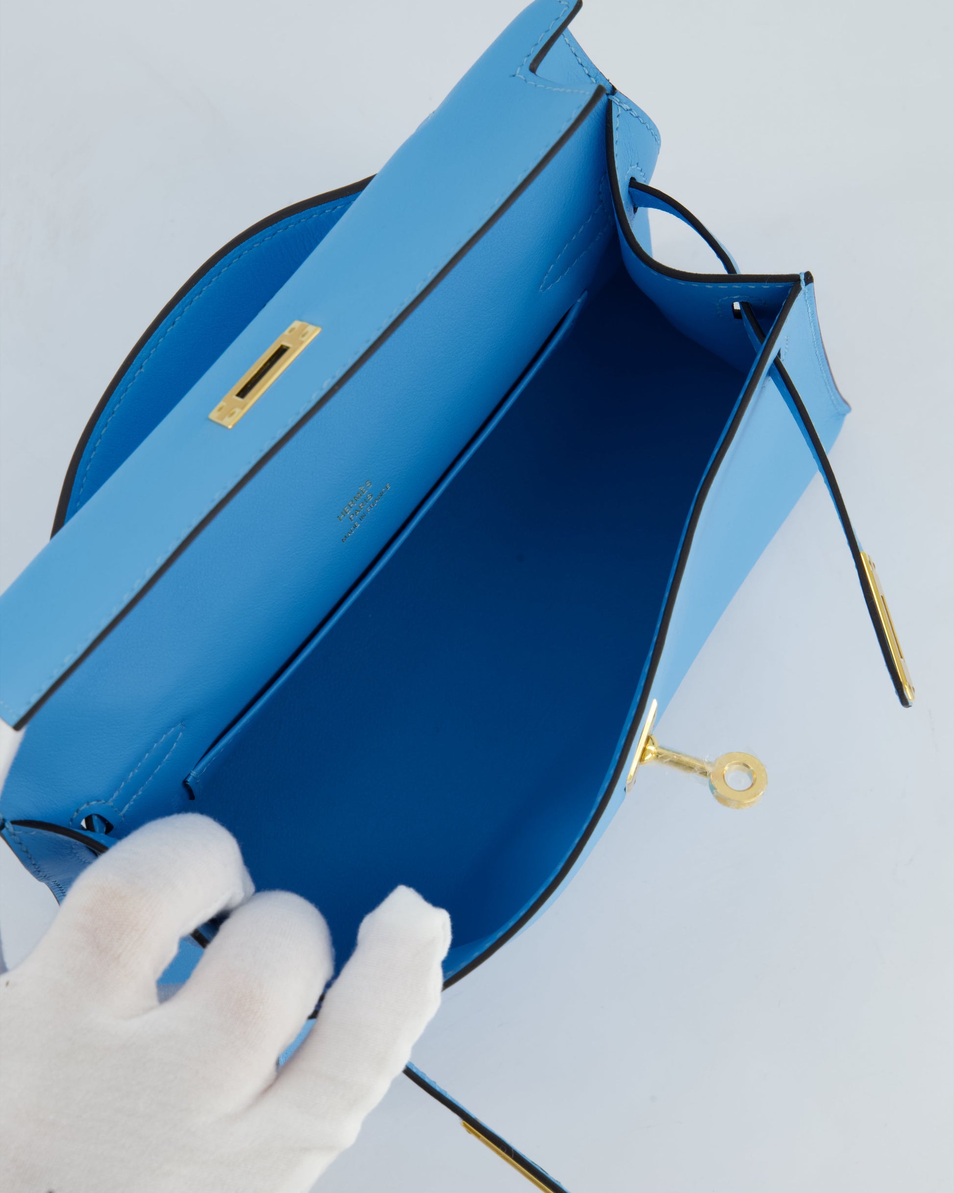 Hermès Kelly Pochette Bag in Bleu Celeste Swift Leather with Gold Hardware