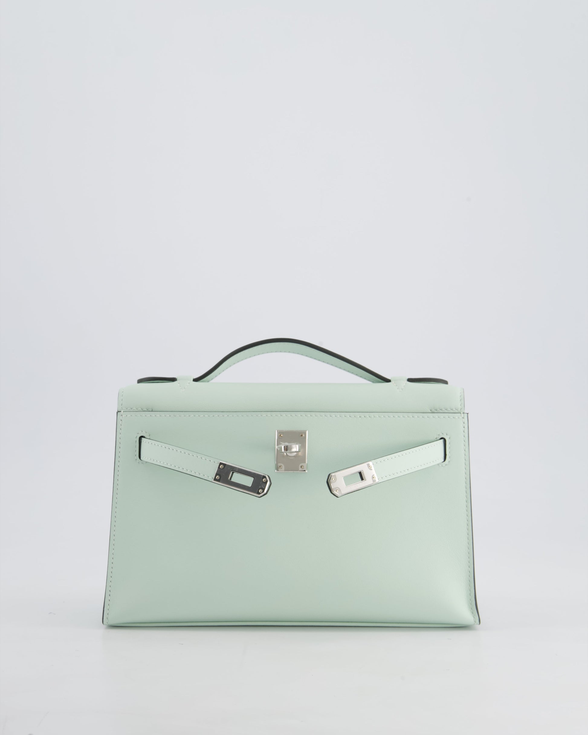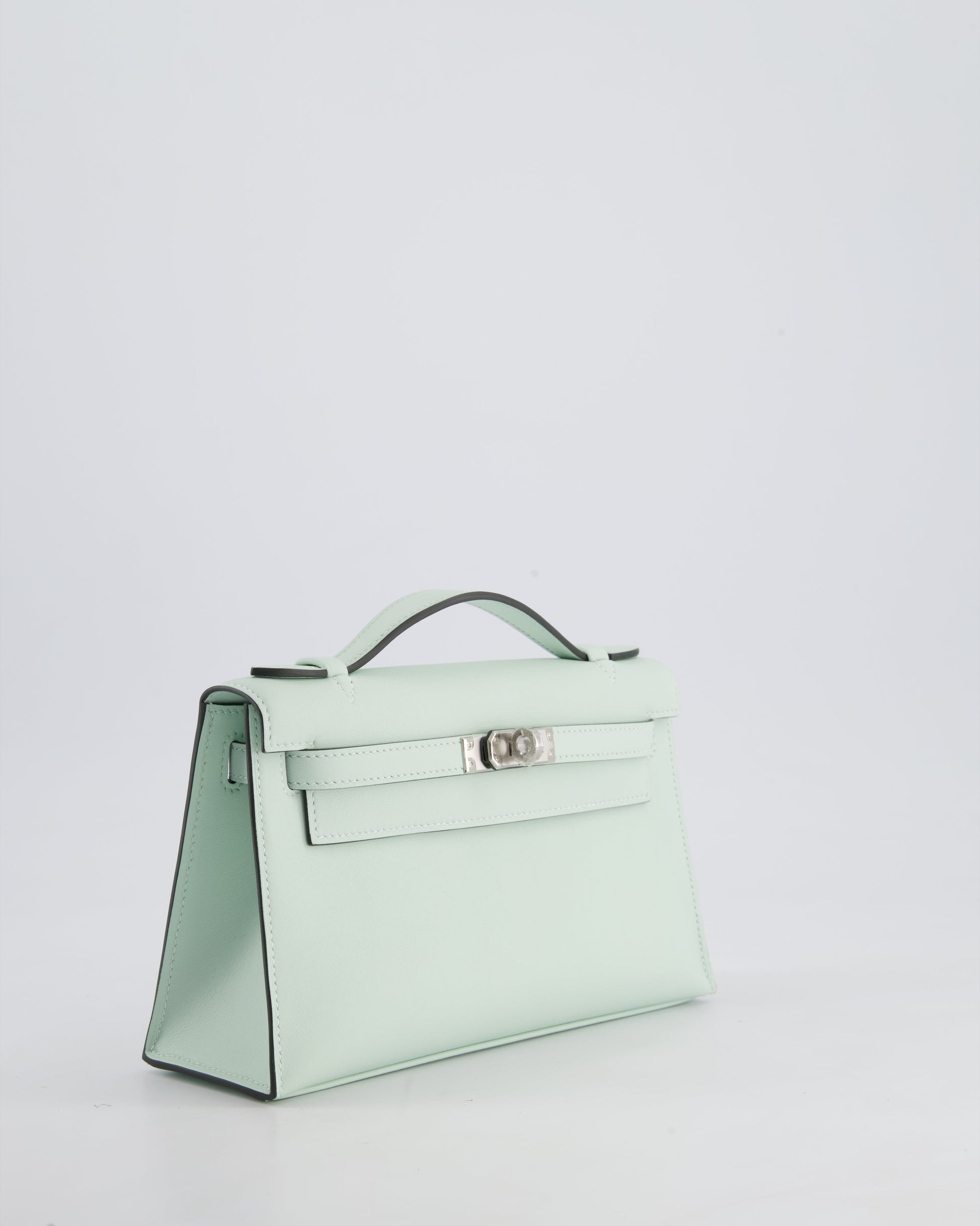 *HOT NEW COLOUR* Hermès Mini Kelly Pochette Bag in Vert Peppermint Swift Leather with Palladium Hardware