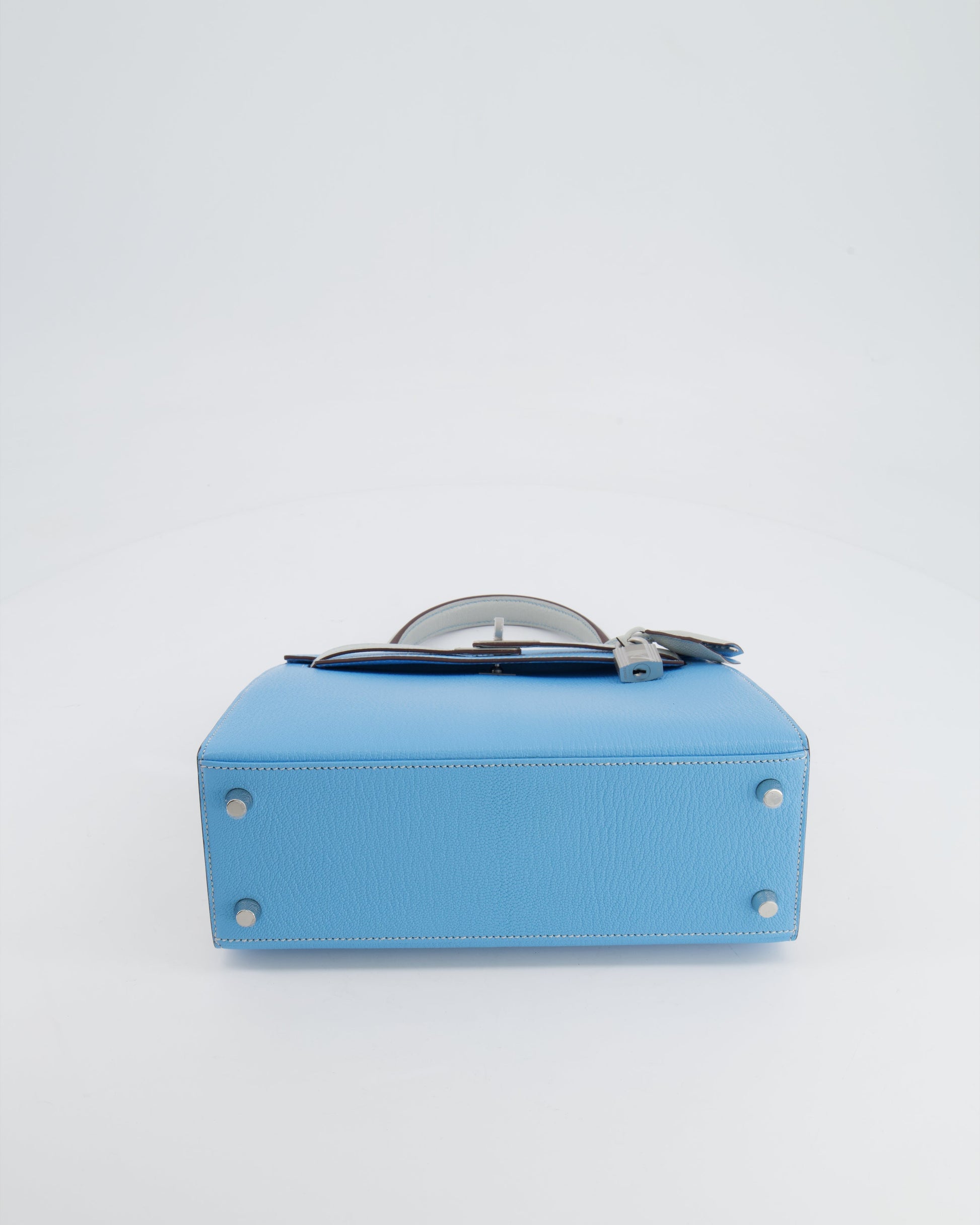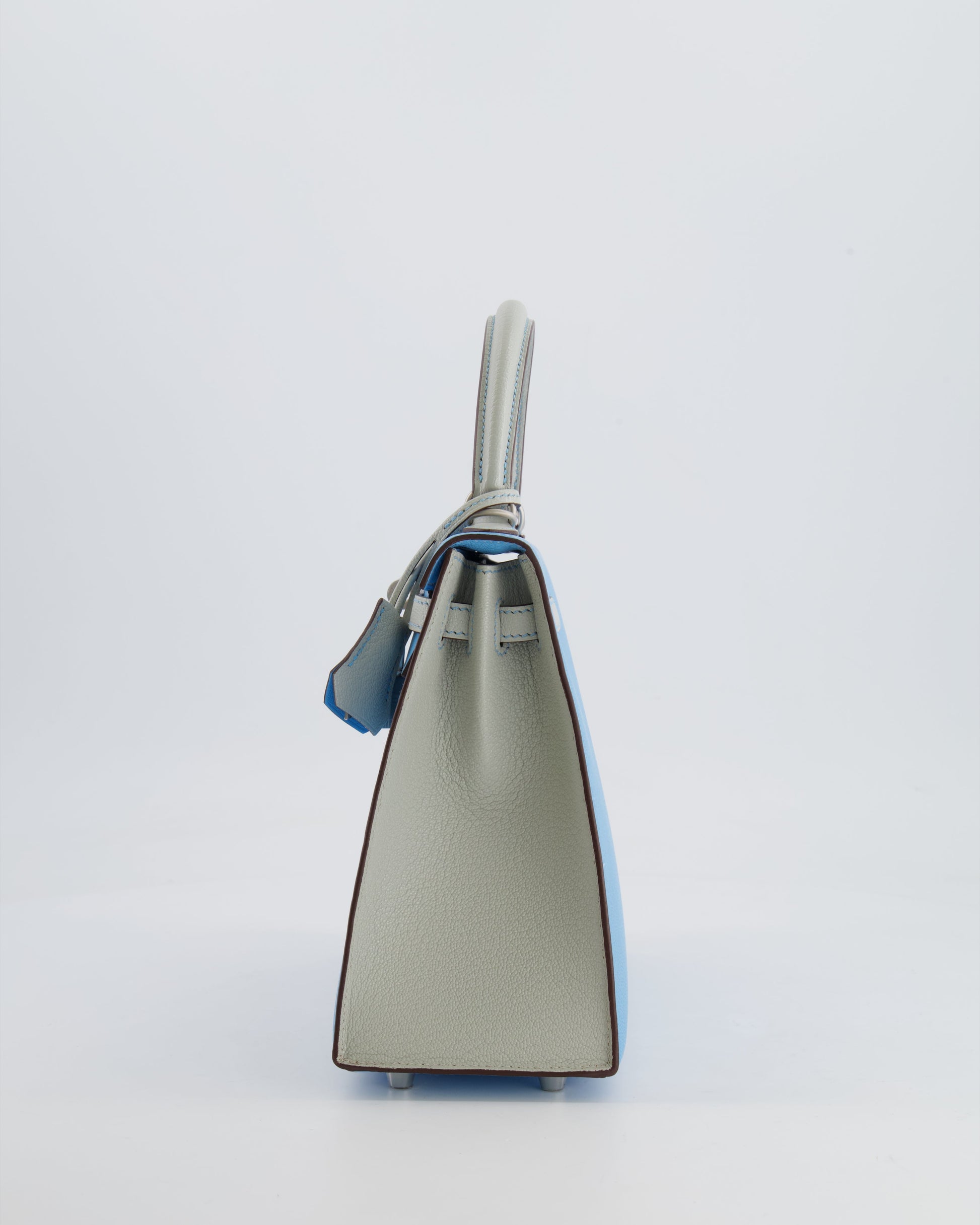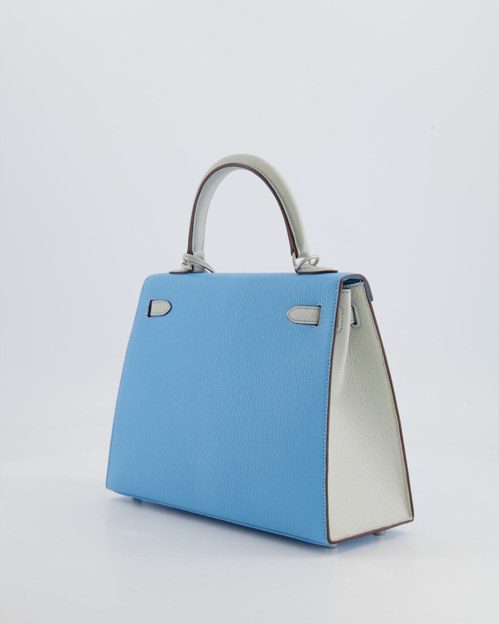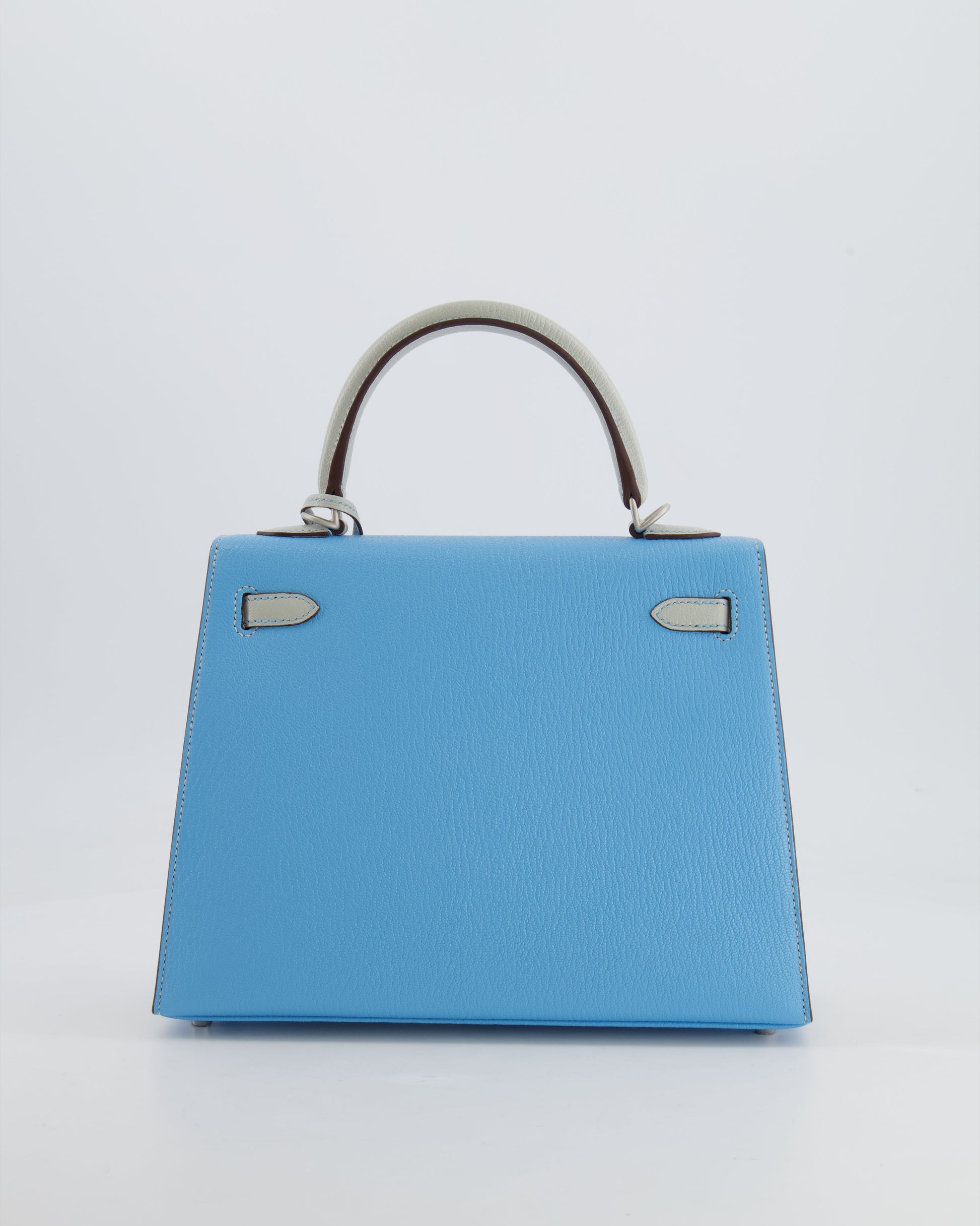 *VERY RARE* Hermès Kelly Sellier HSS 25cm Bag in Bleu Celeste and Gris Perle Chèvre Leather with Contrast Stitching and Brushed Palladium Hardware