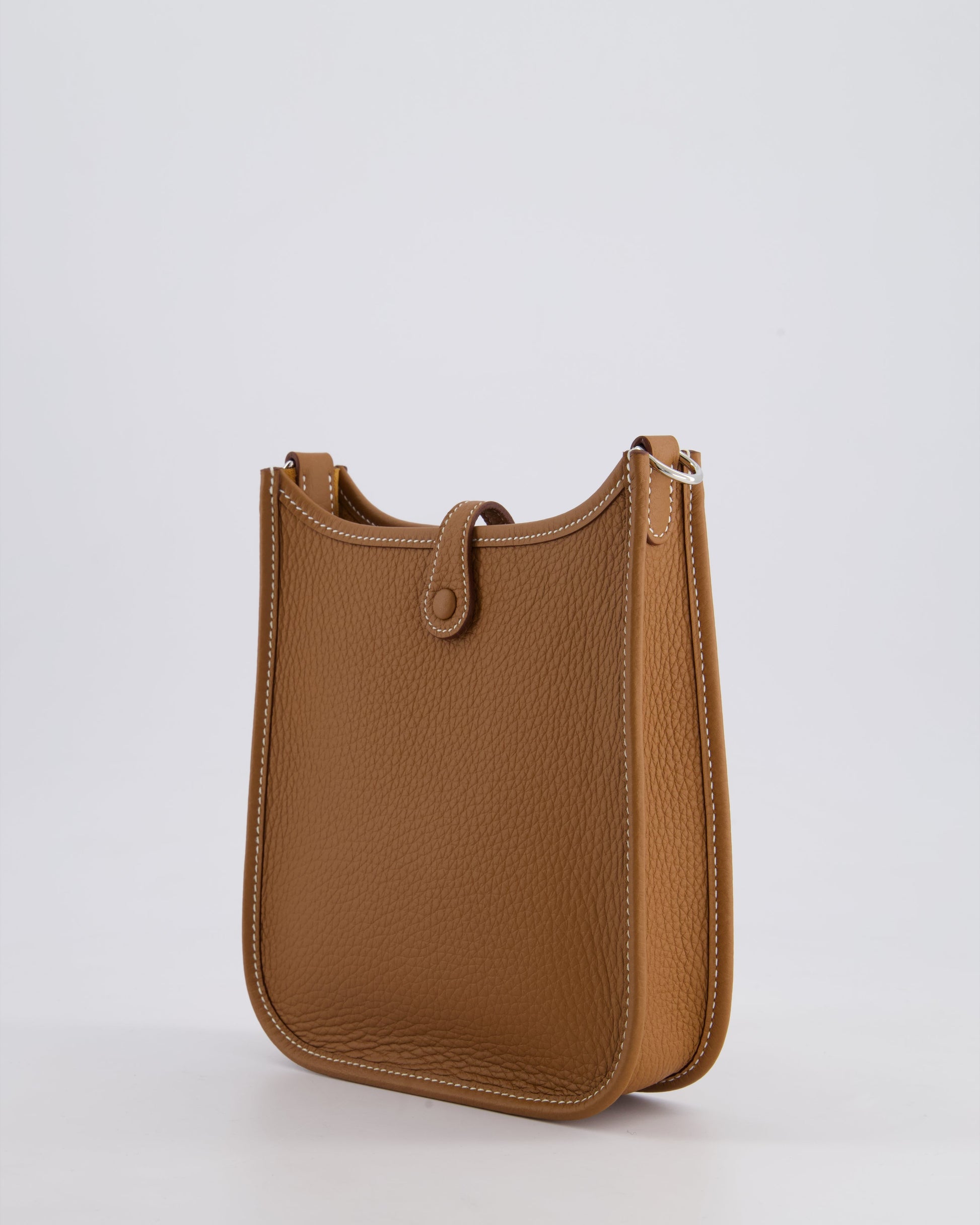 Hermès Mini Evelyne 16 Bag in Gold Clemence Leather with Palladium Hardware & Gold Sangle Strap