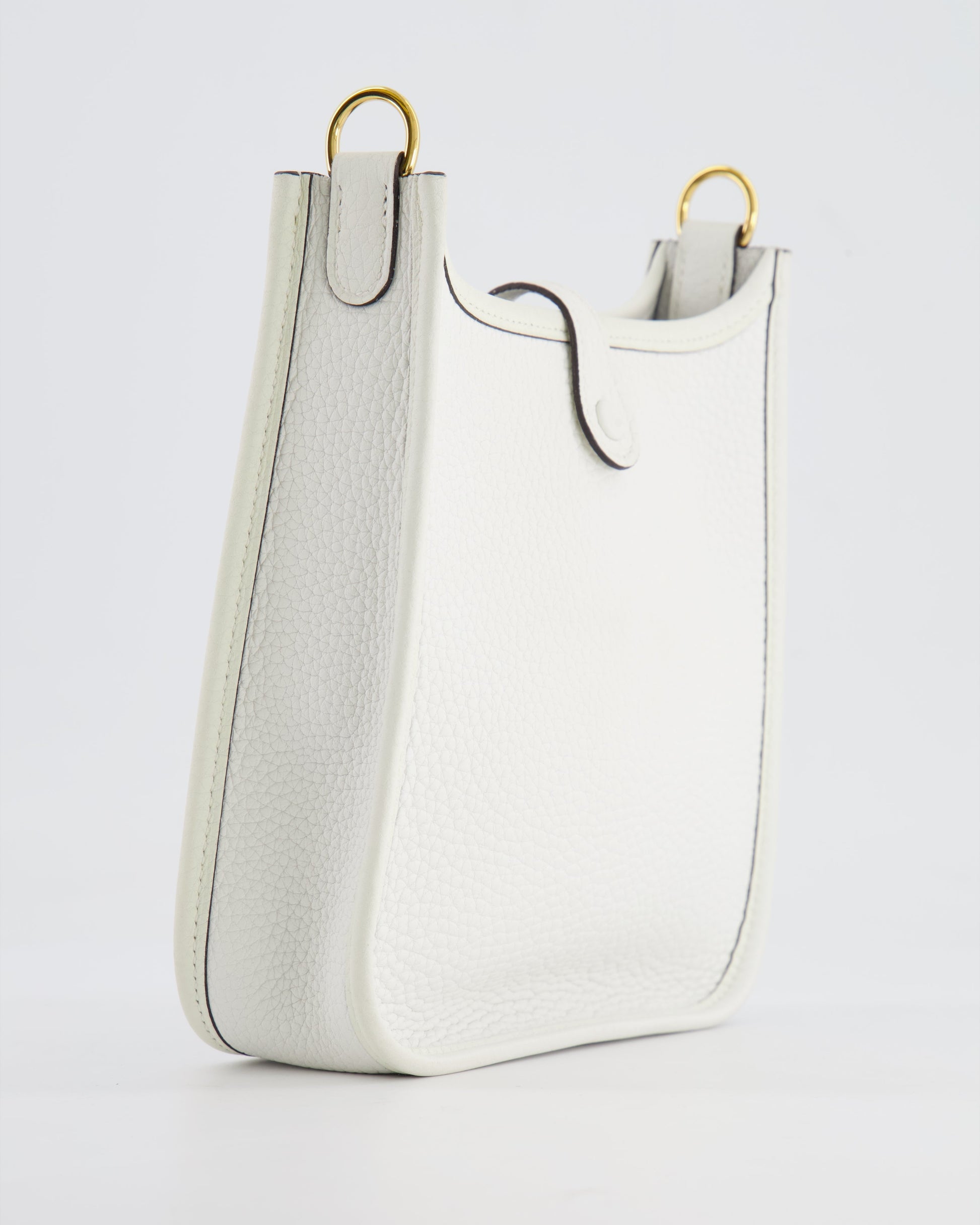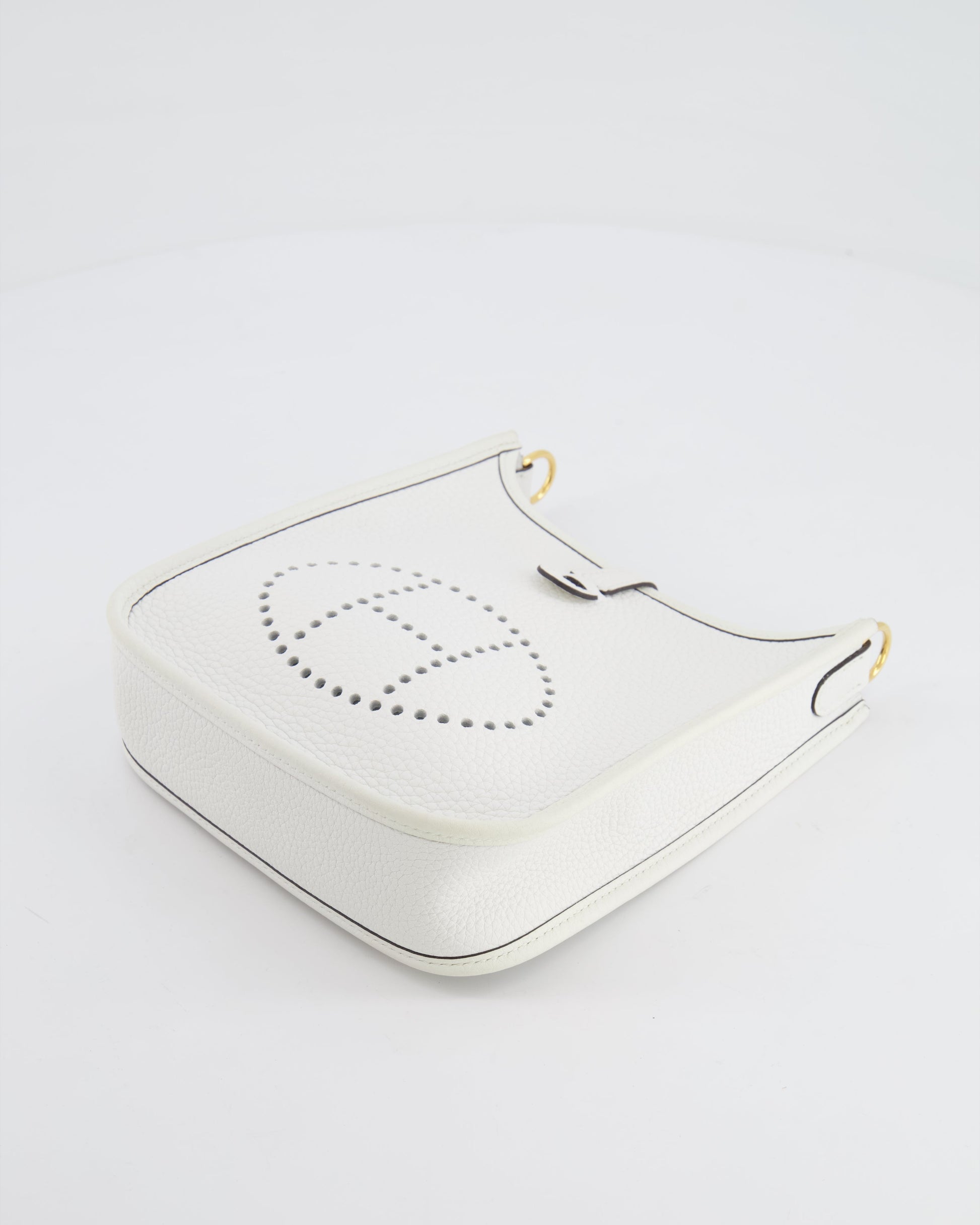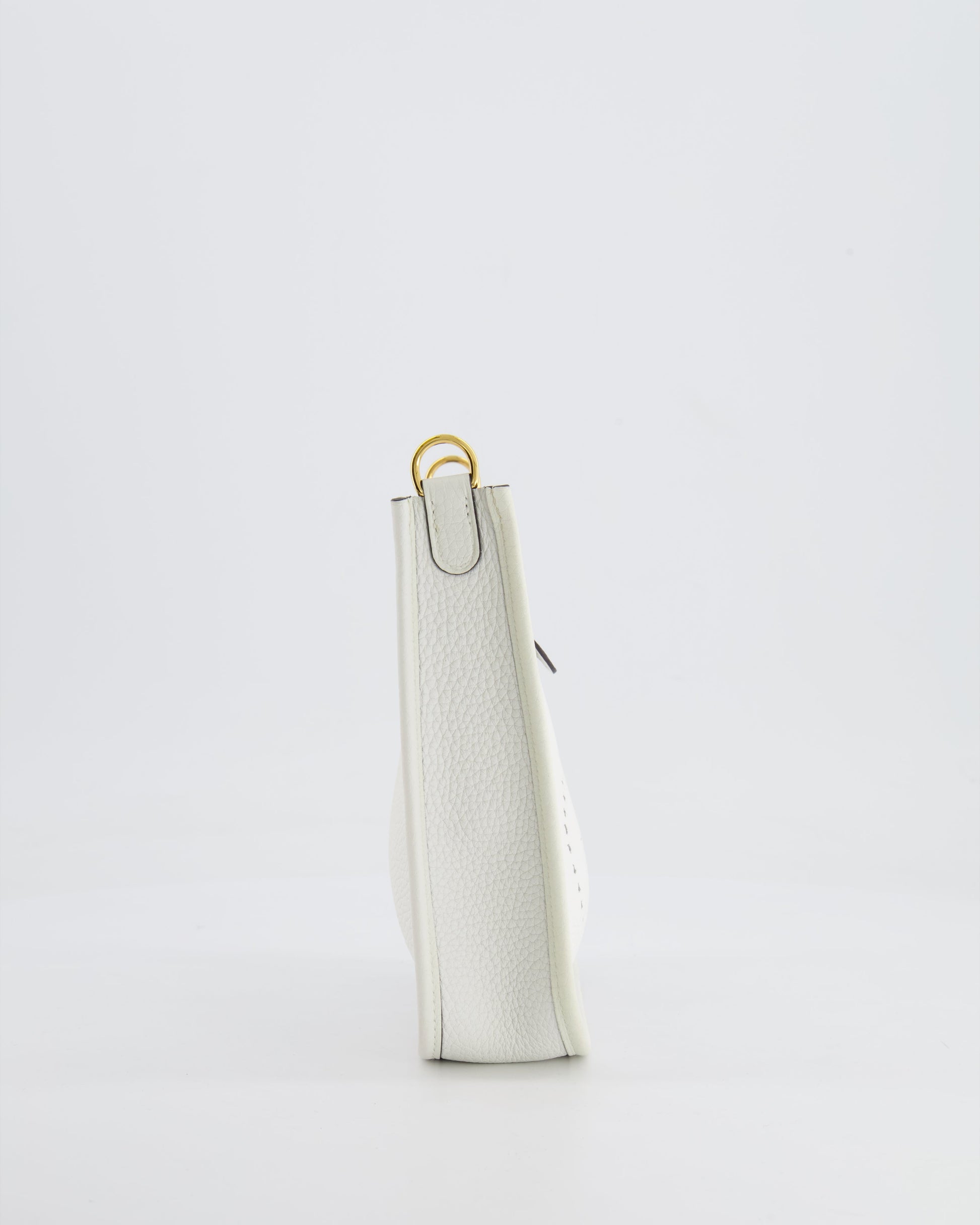 Hermès Mini Evelyne Bag in White Clemence Leather with Gold Hardware and White Canvas Strap