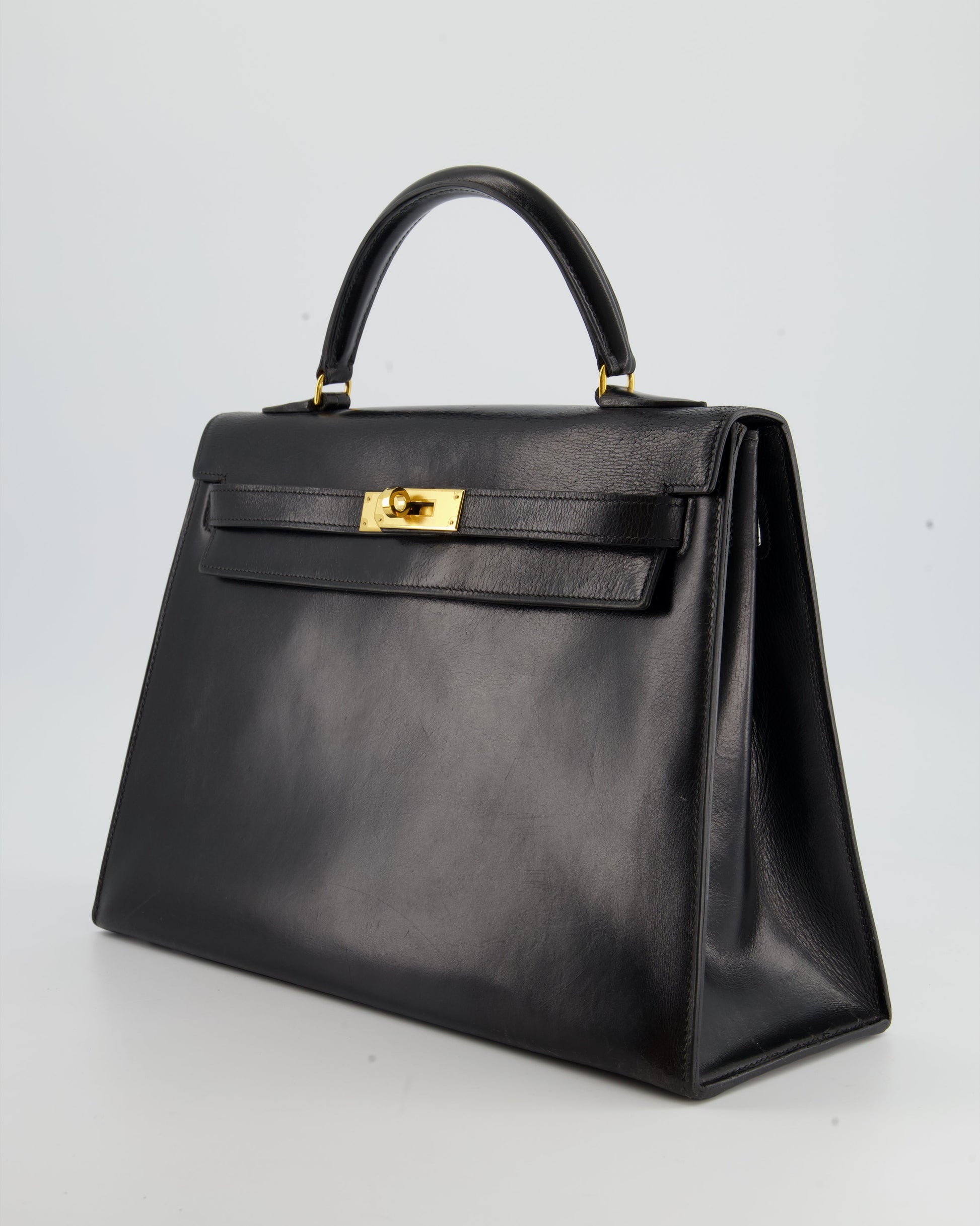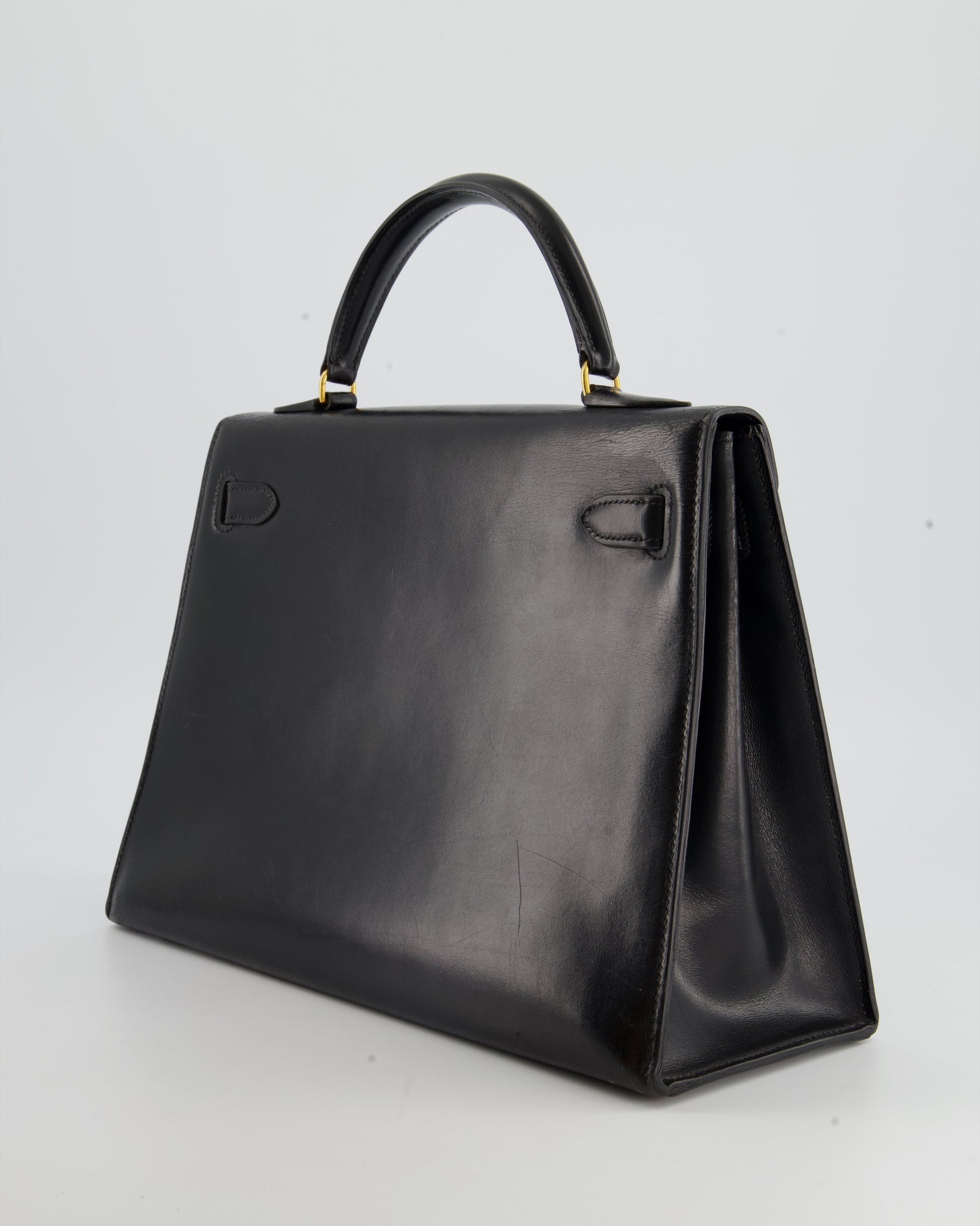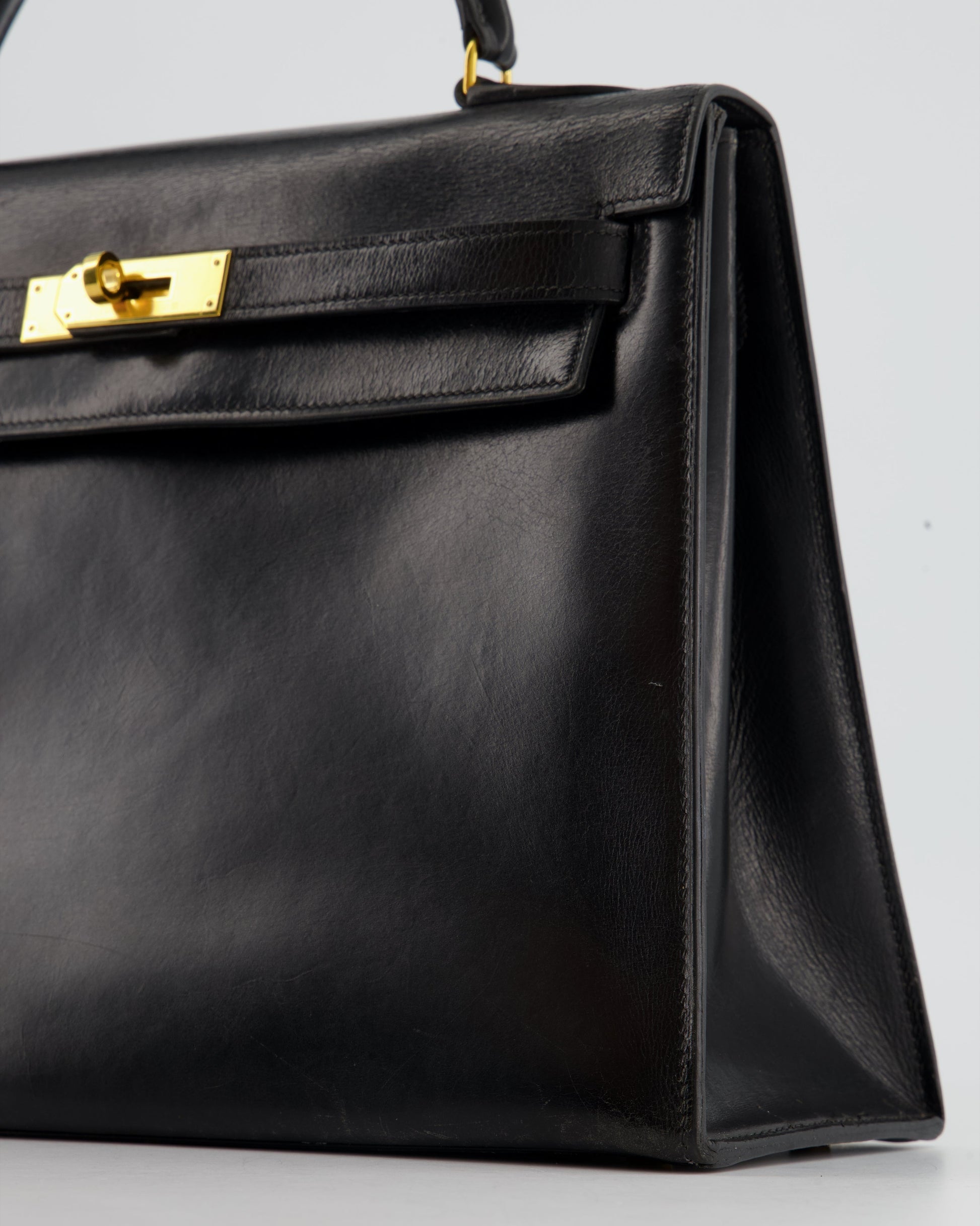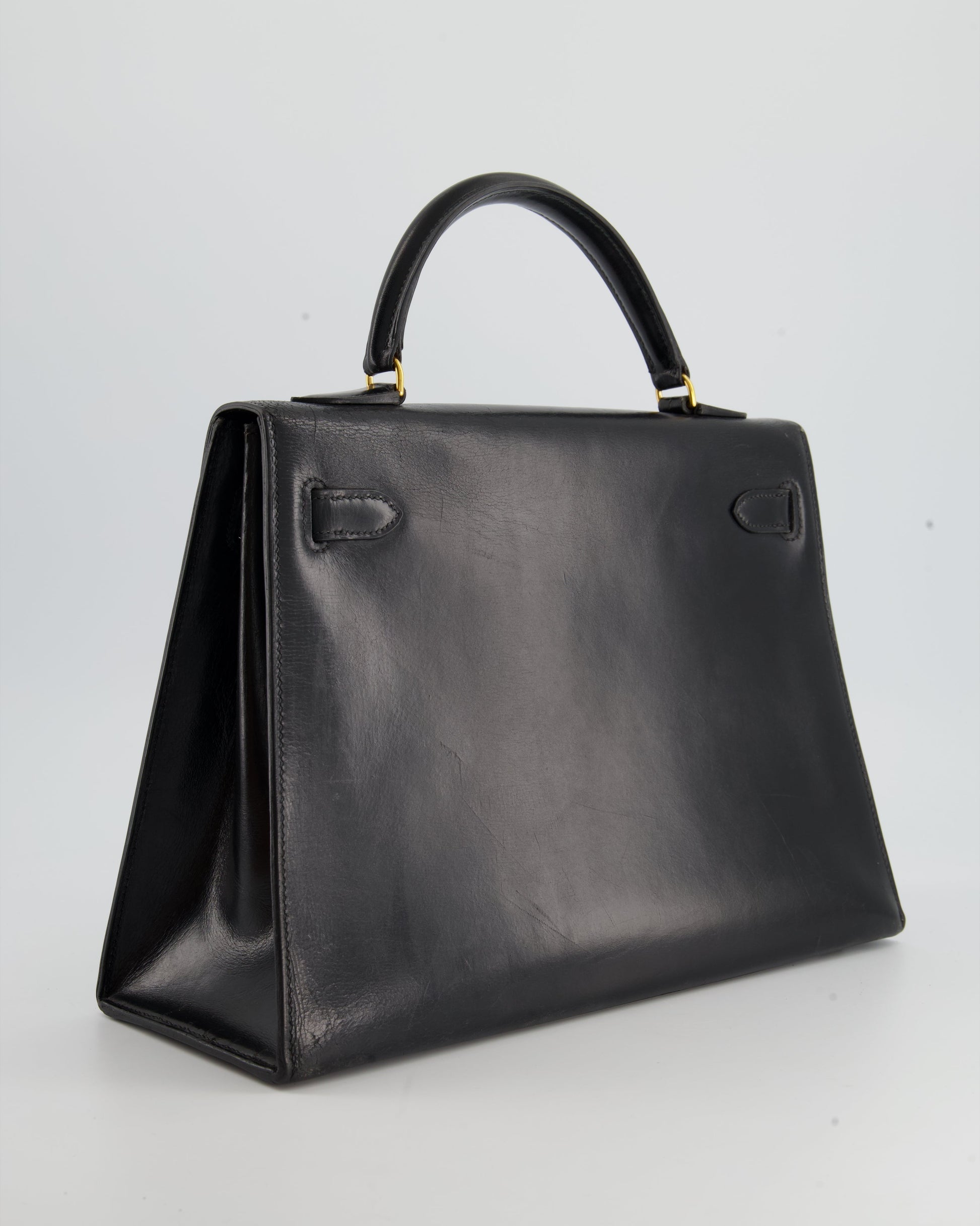 Hermès Vintage Kelly Bag 32cm Sellier in Black Box Calf Leather with Gold Hardware