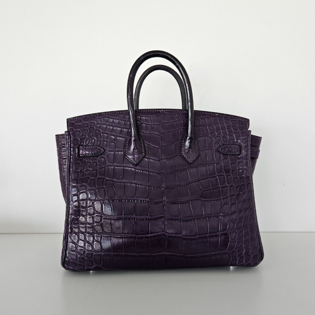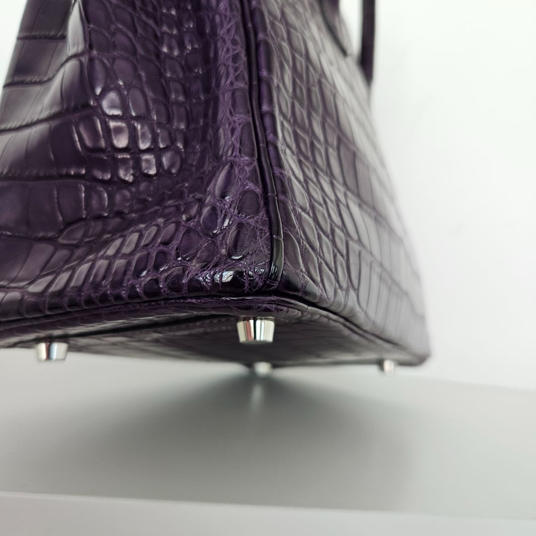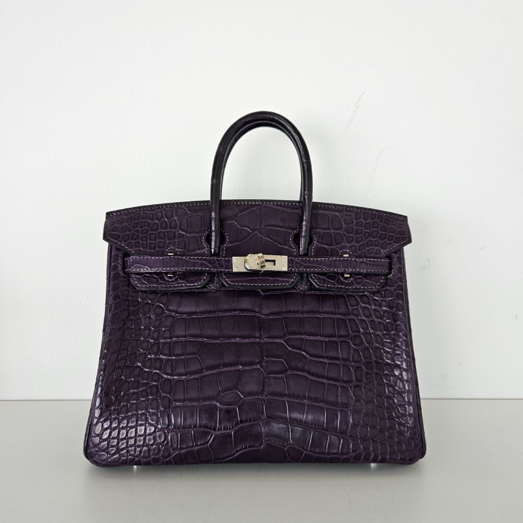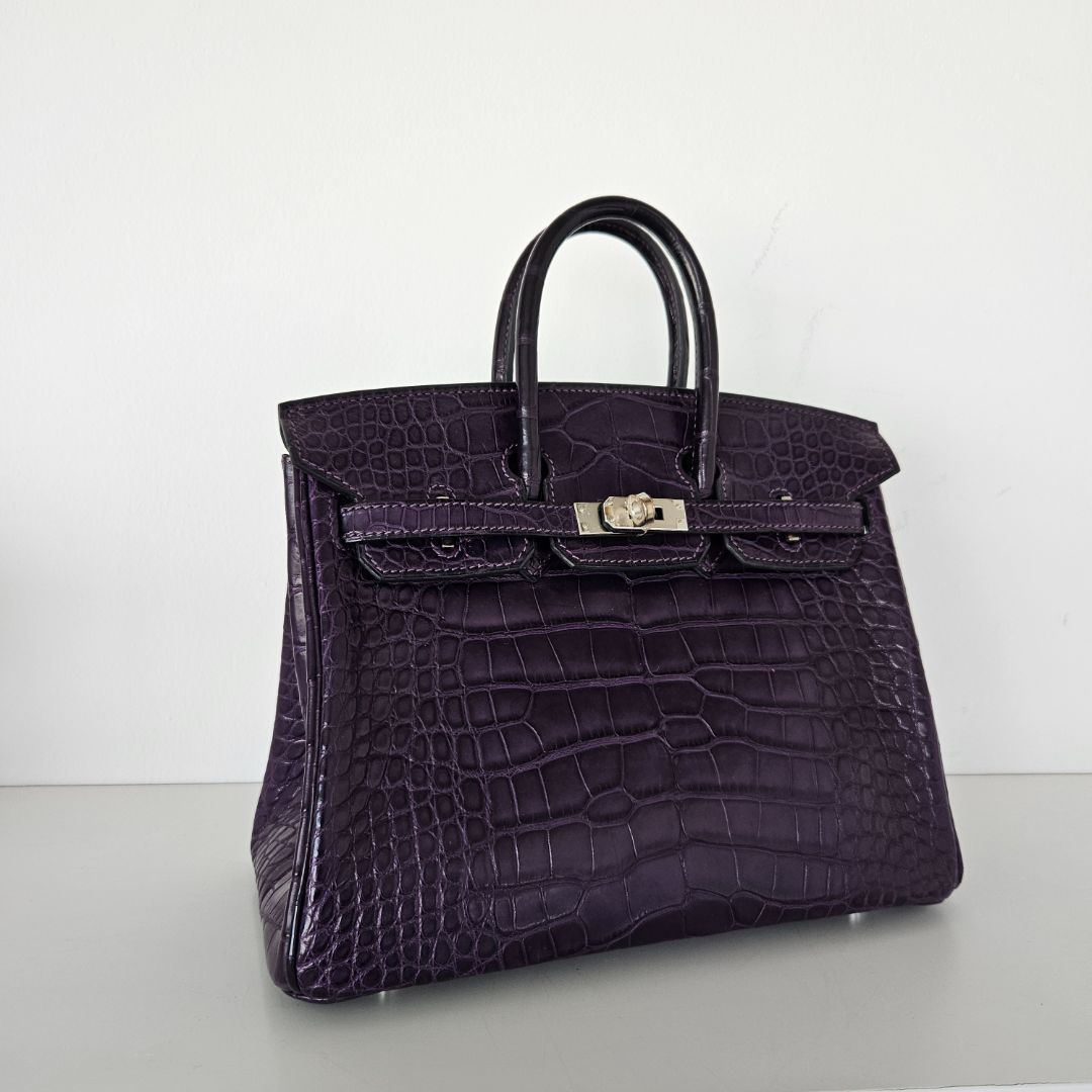 Hermès Birkin 25 Amethyst Crocodile Palladium Hardware