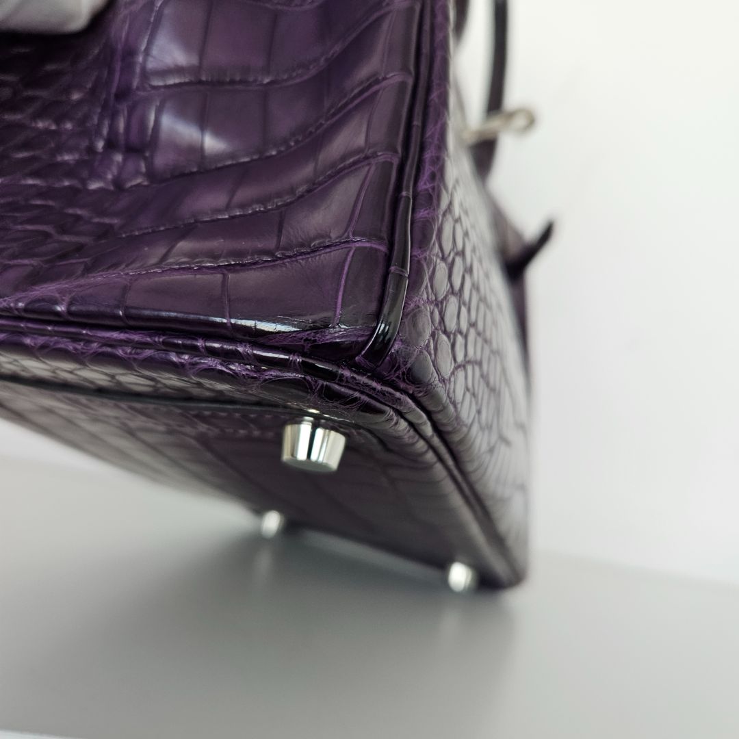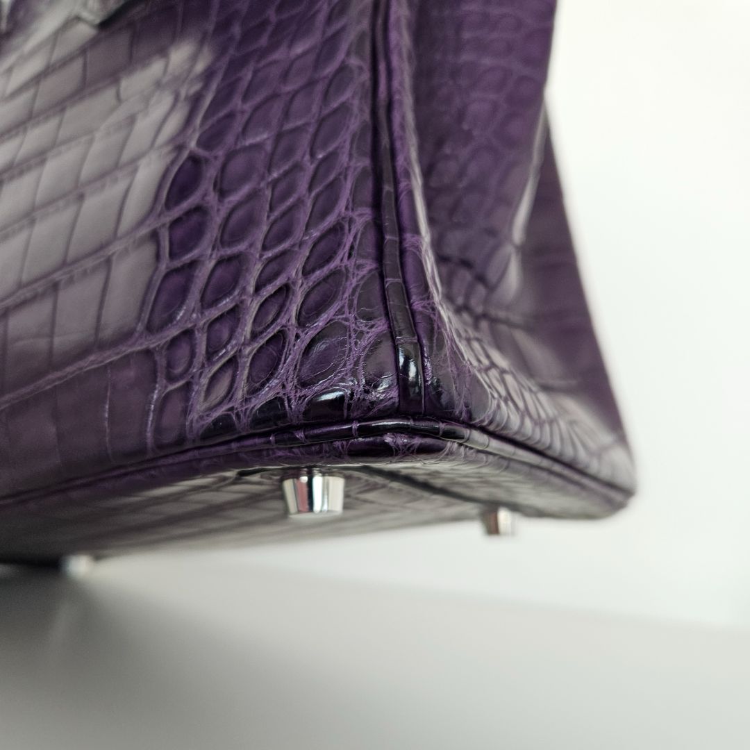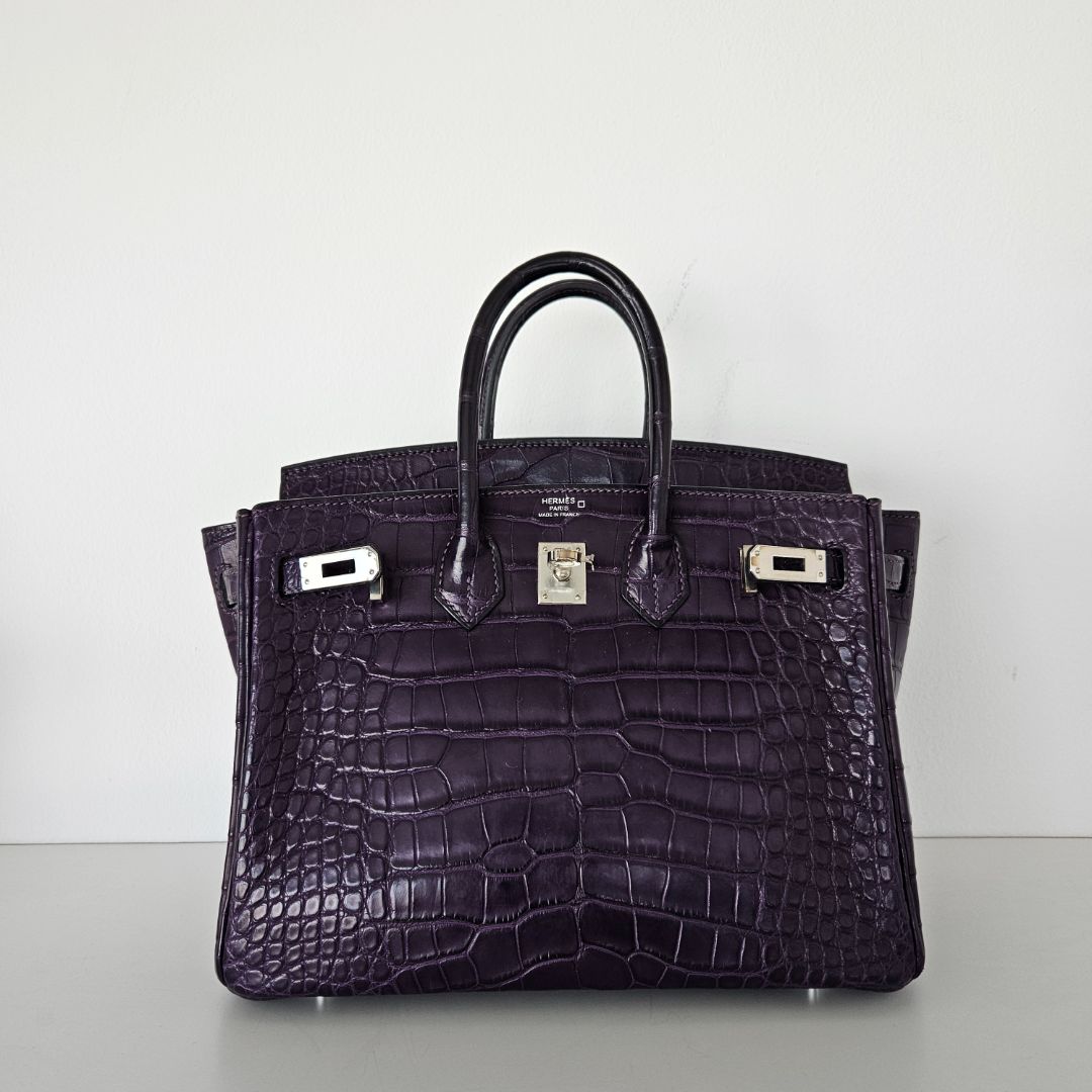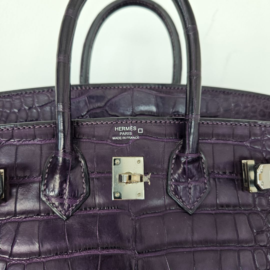 Hermès Birkin 25 Amethyst Crocodile Palladium Hardware