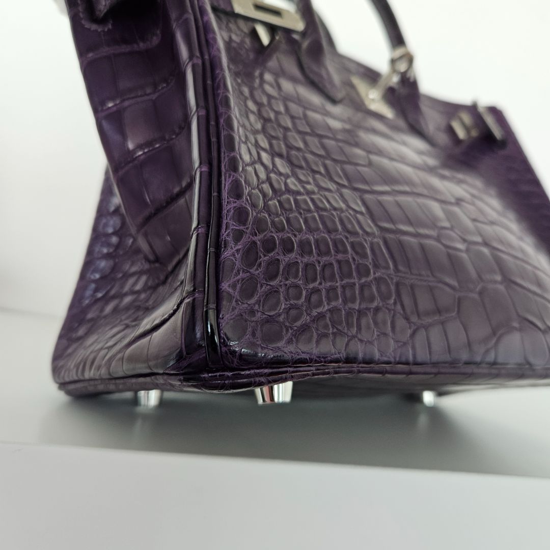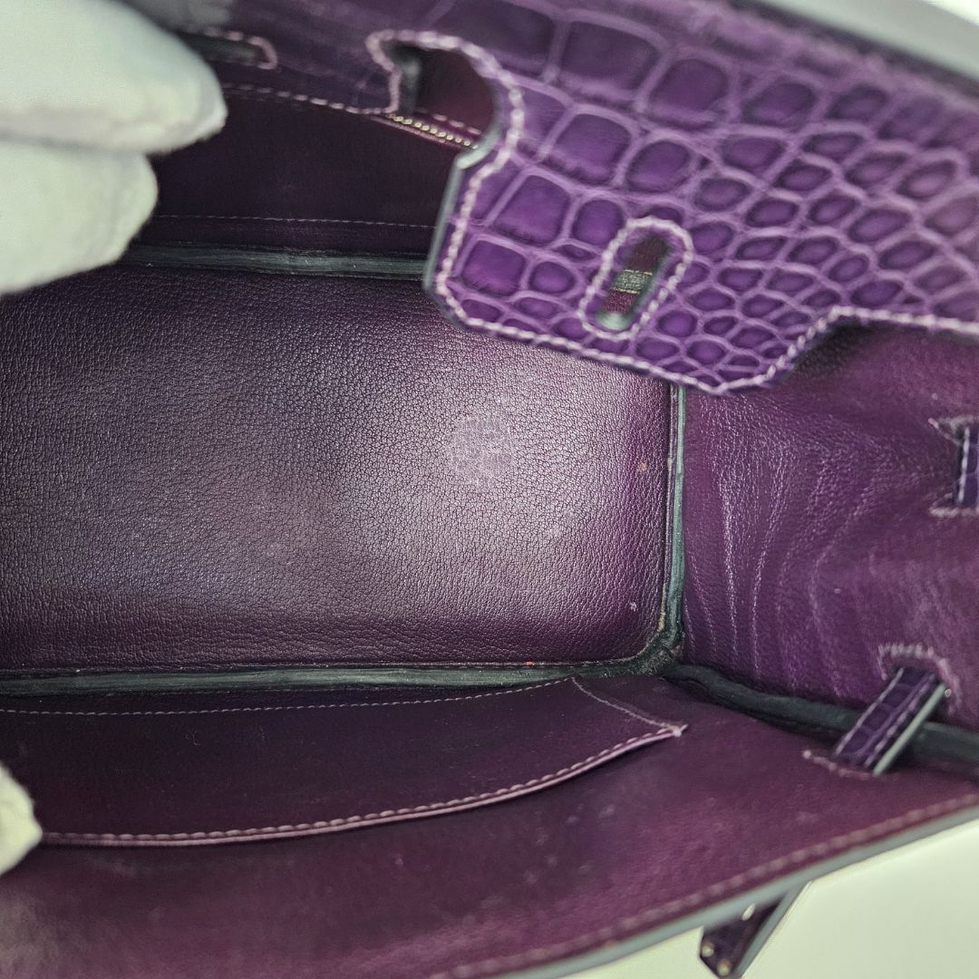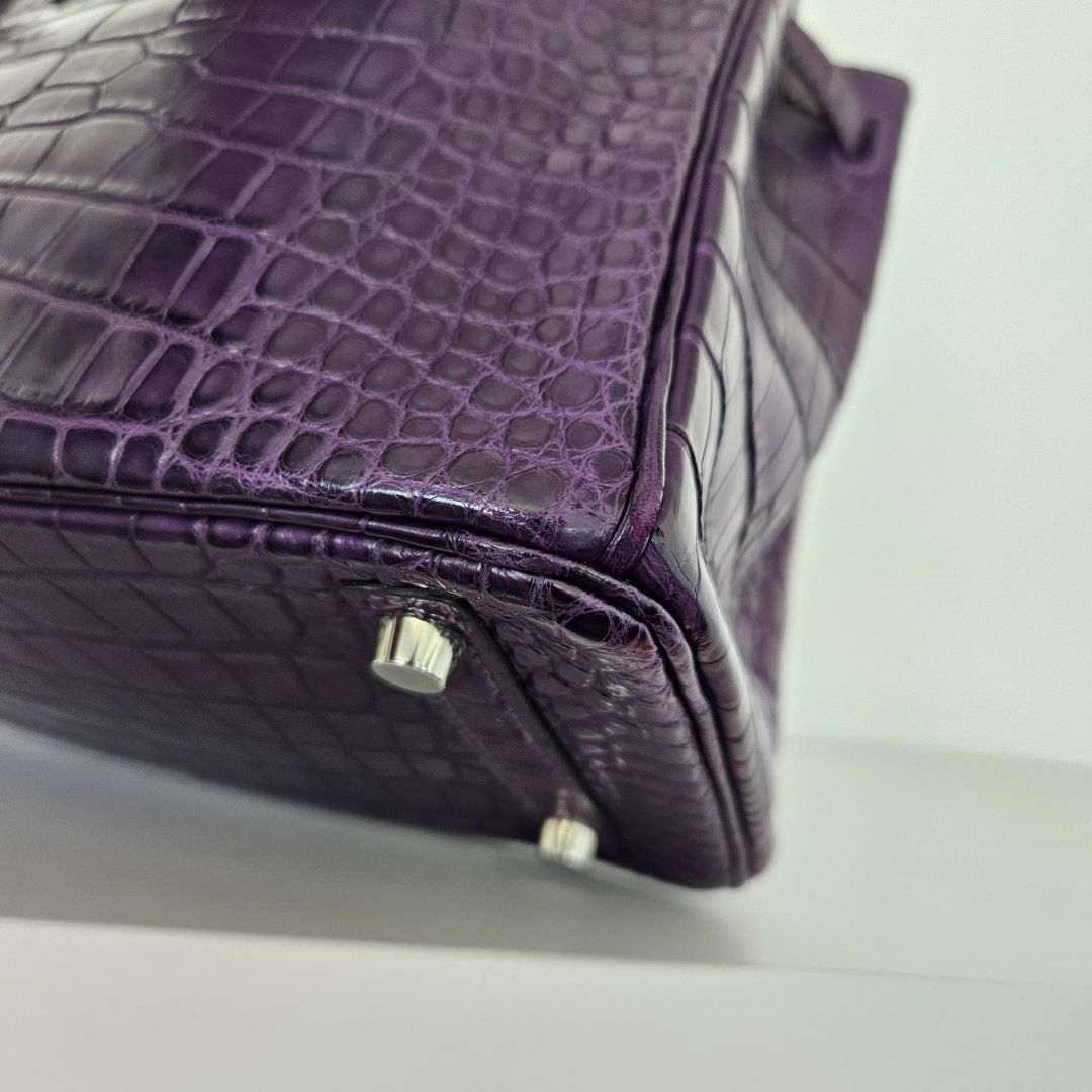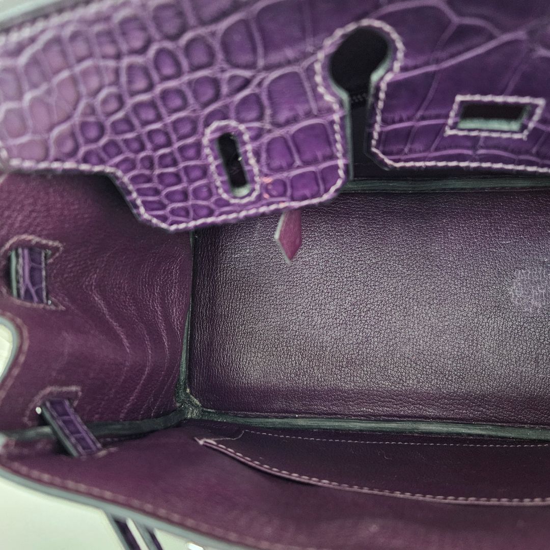 Hermès Birkin 25 Amethyst Crocodile Palladium Hardware