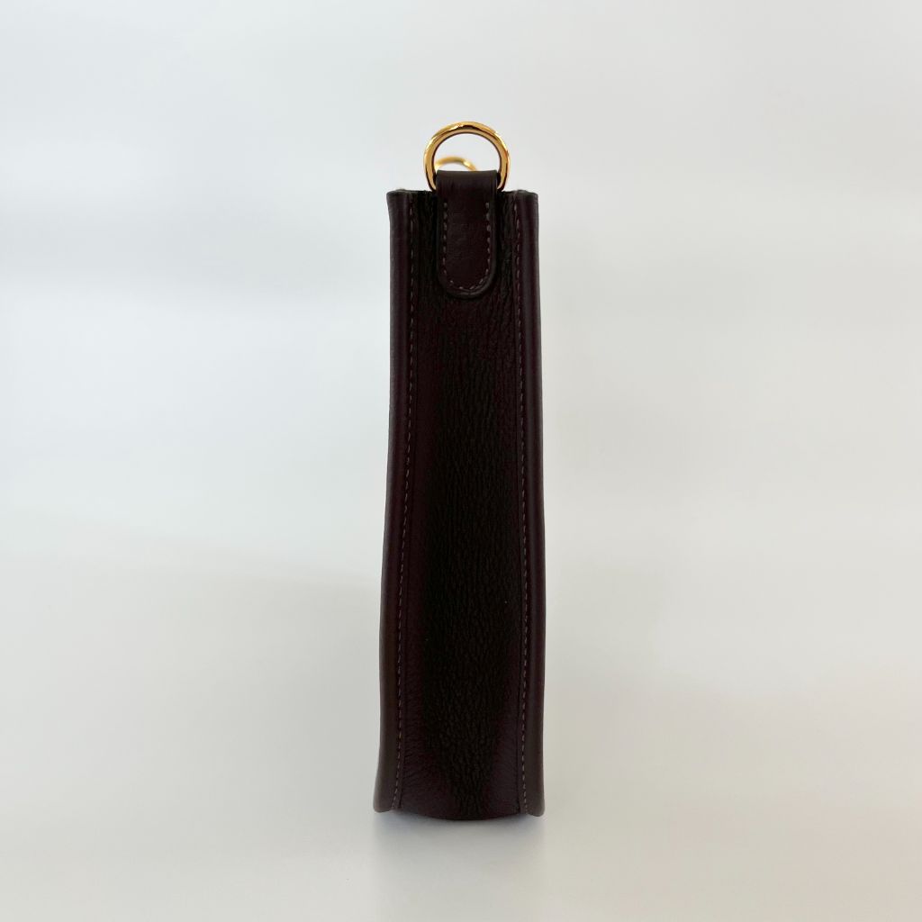 Hermes Chocolate Clemence Leather Evelyn TPM bag with detachable strap with gold hardware