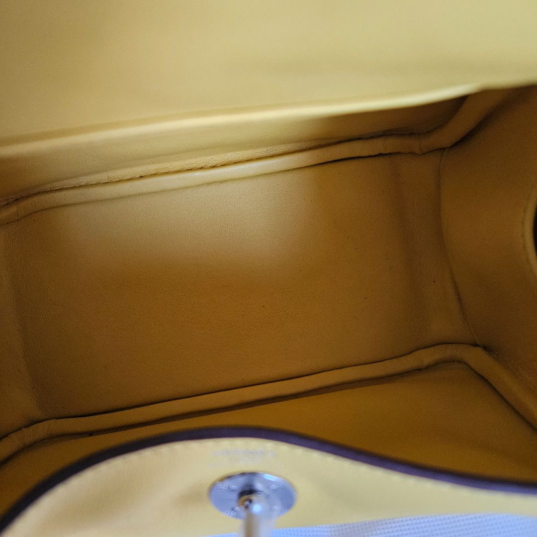 Hermès Mini Lindy Swift leather bag in yellow with silver hardware Crafted using the finest leather and silver hardware, this timeless bag is the essence of refined elegance. A modern classic for the fashion-forward, you'll be the envy of your friends wearing this timeless design.