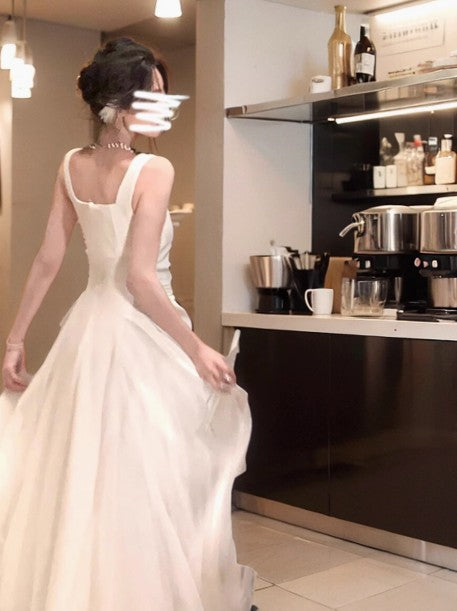 High-grade fluffy mesh white suspender dress ED01747