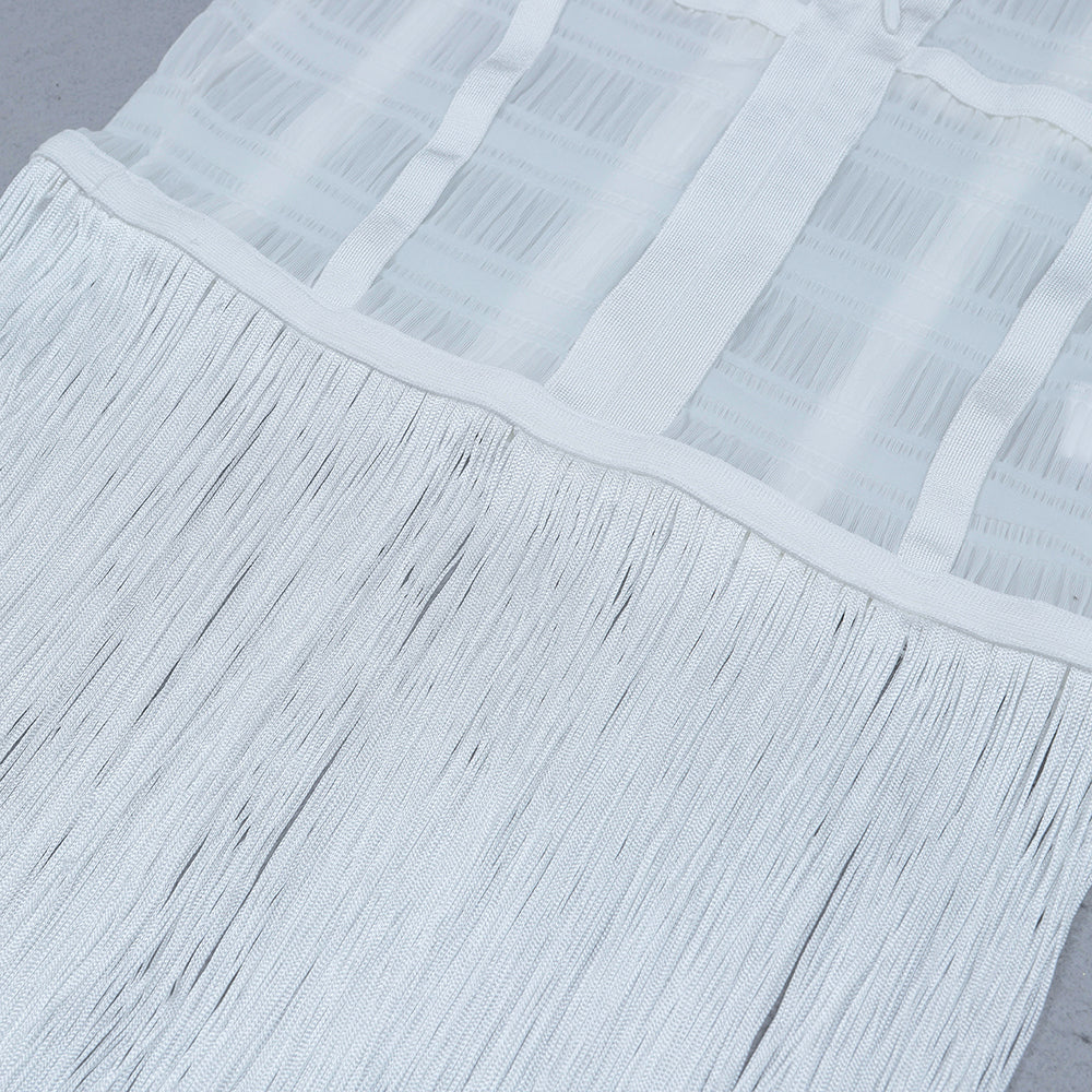 Hollow Fringe White Sleeveless One-piece Dress Summer Party Gathering Dresses