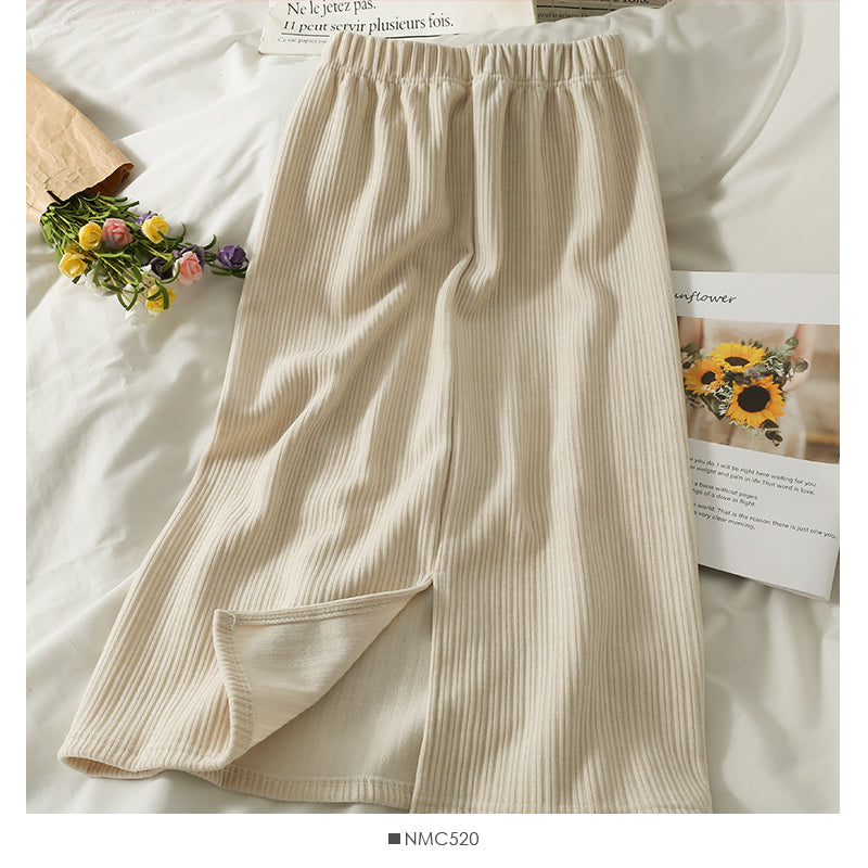 Hong Kong style retro vertical stripe elastic waist medium length skirt 2494