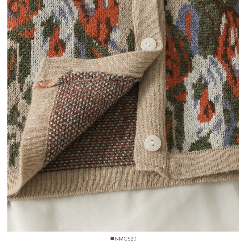 Hong Kong Vintage printed low neck long sleeve cardigan top women's 1994