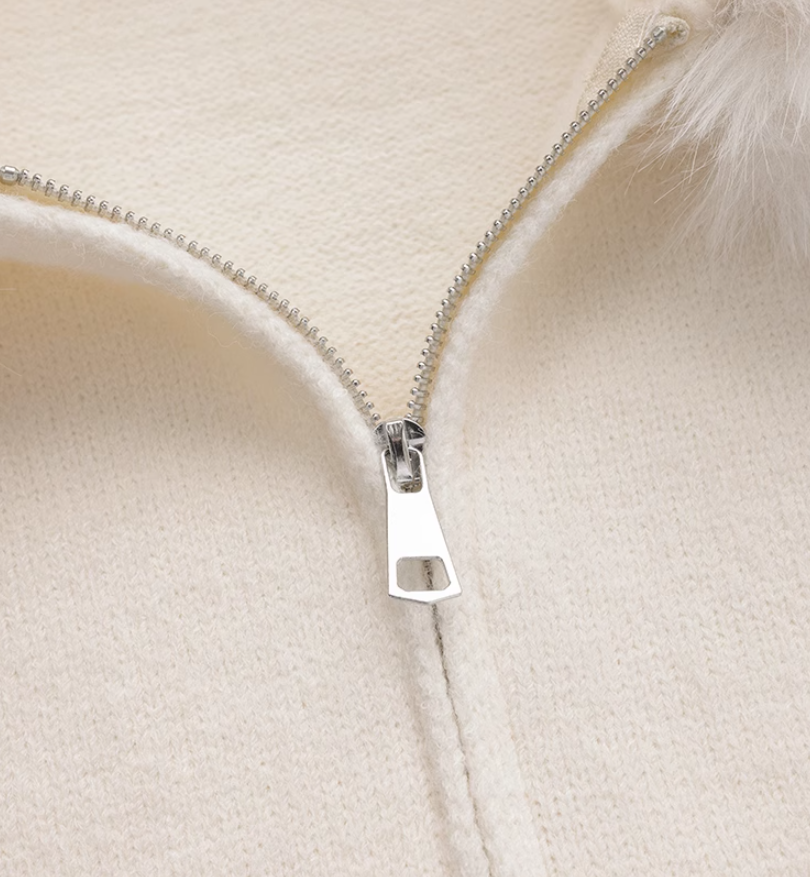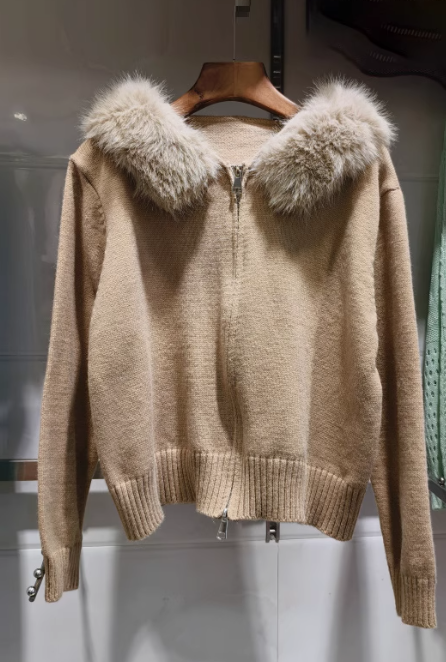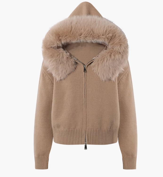 2025 New Style Fashion Hooded Fur Collar Zipper Loose Sweater ED0544