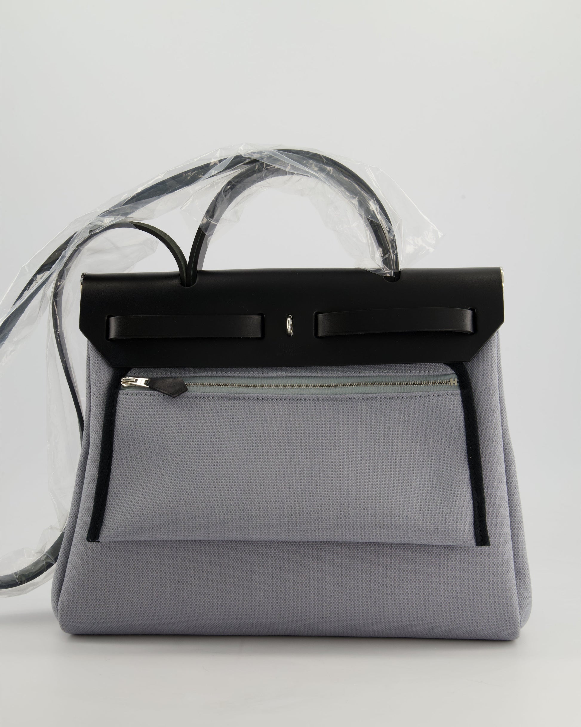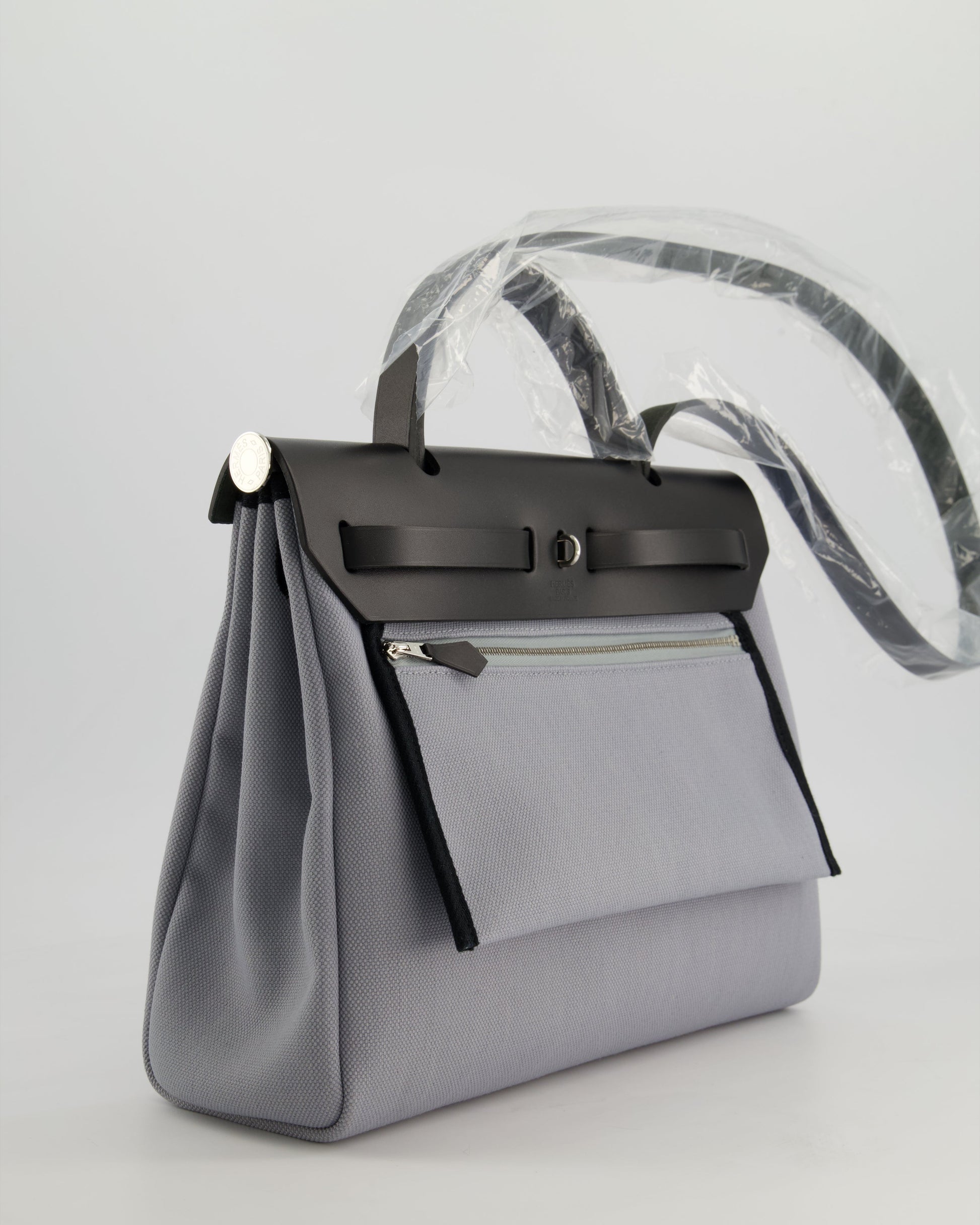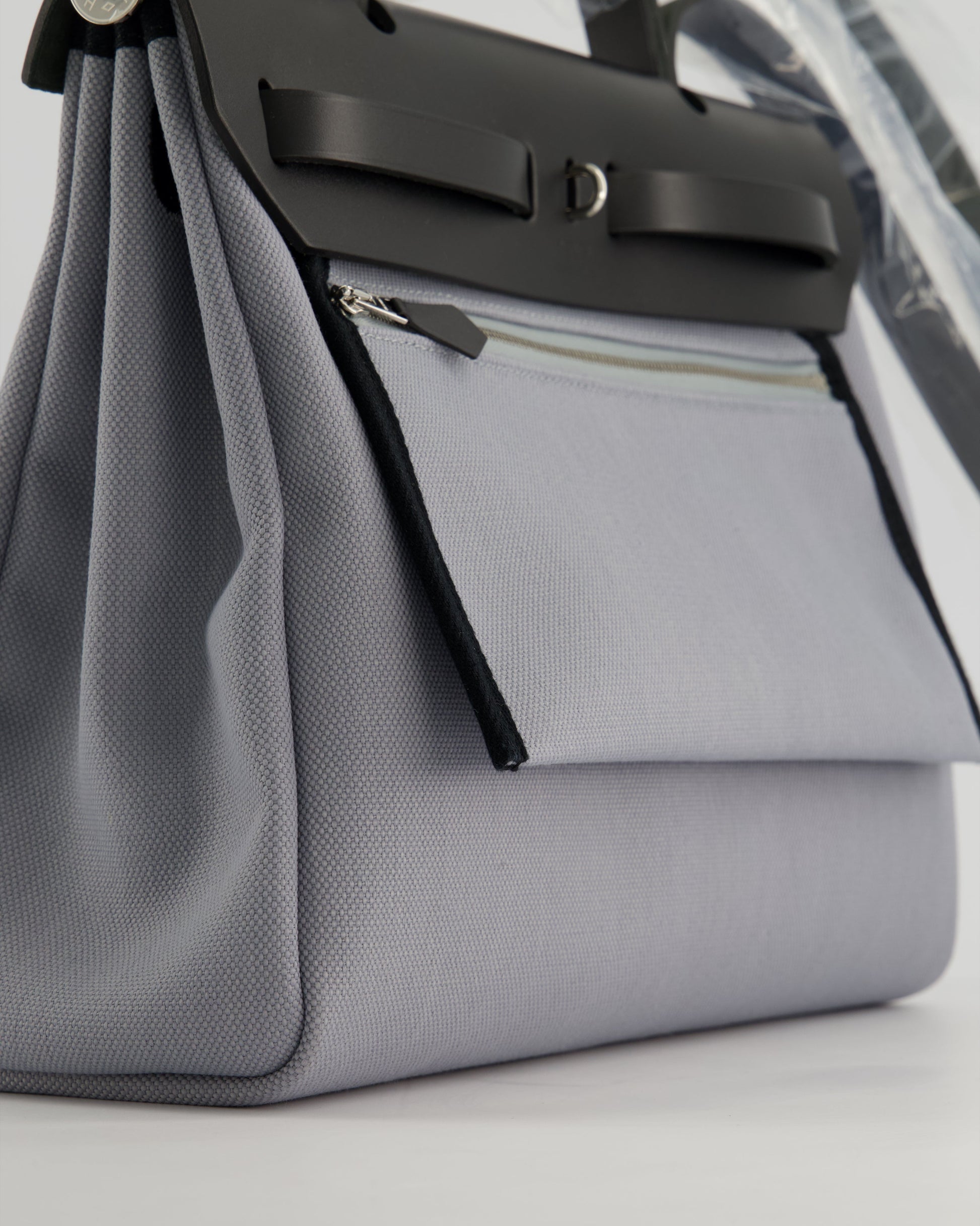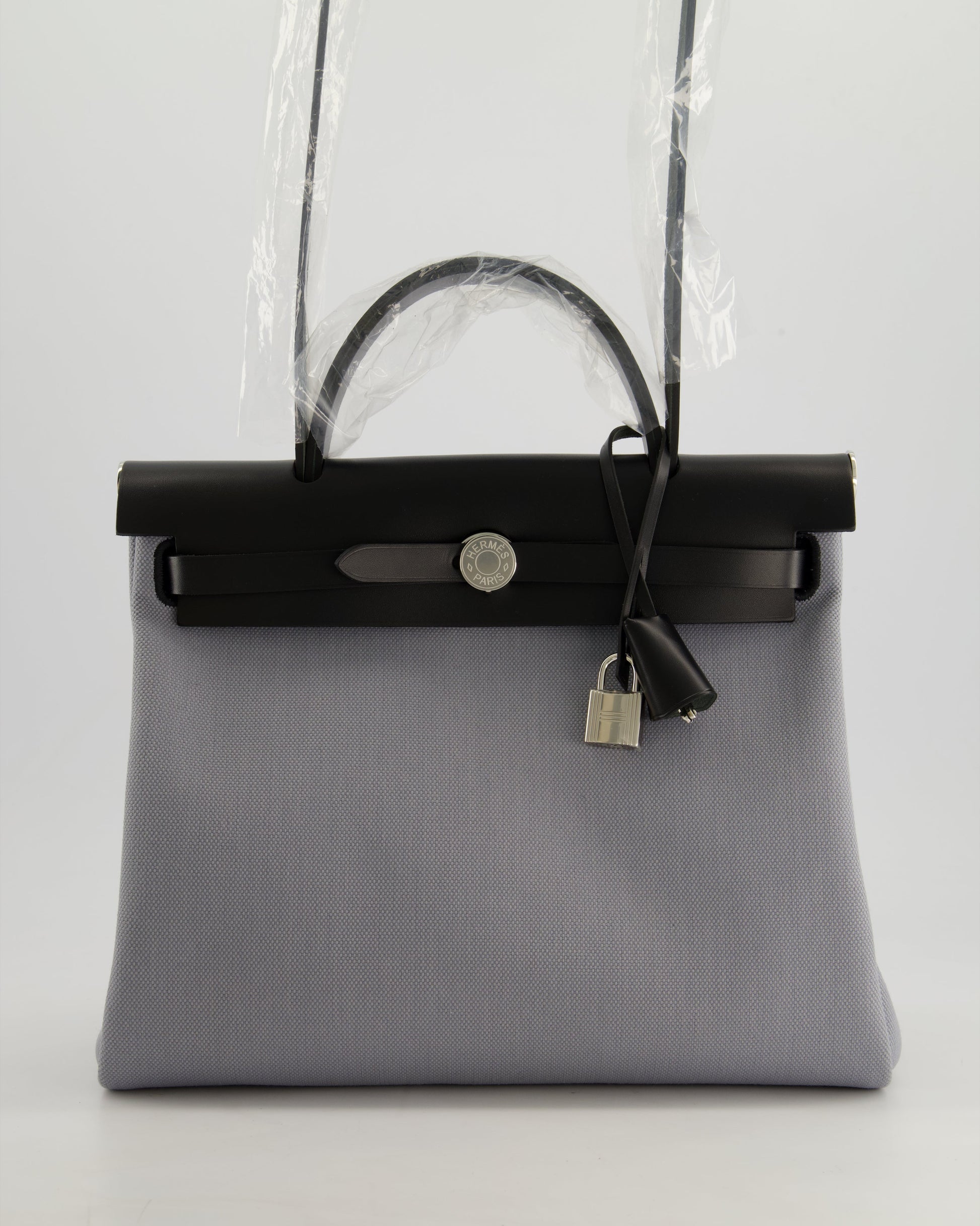 *HOT & NEW COLOUR* Hermès Herbag 31 Zip Bag in Gris Pantin Toile Officier Canvas, Noir Vache Hunter Leather with Palladium Hardware