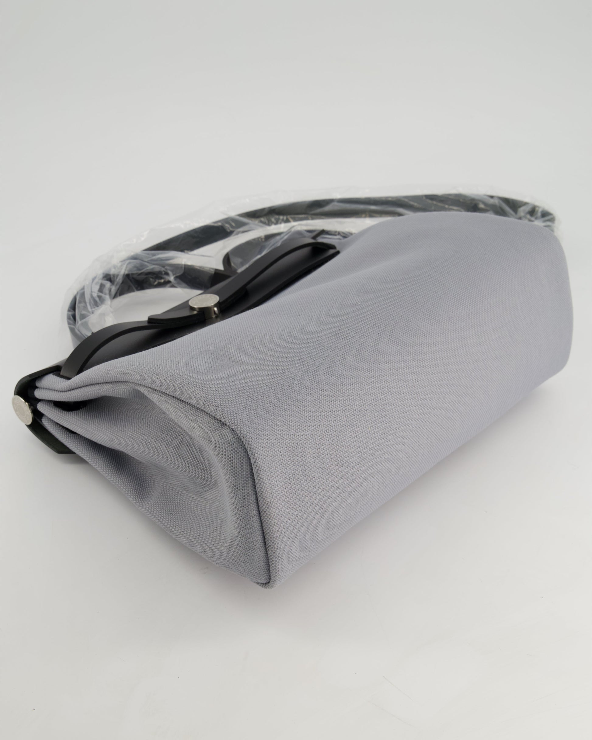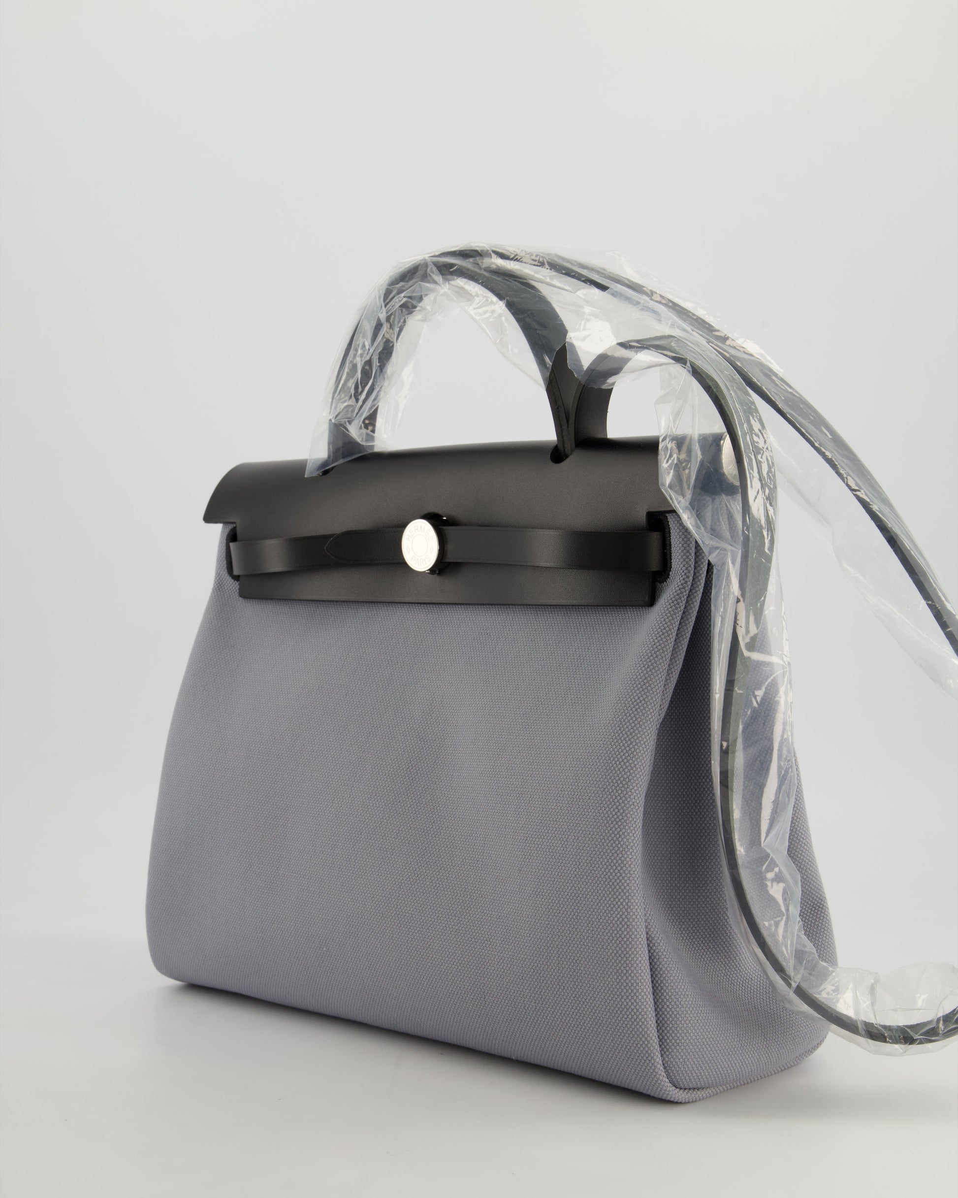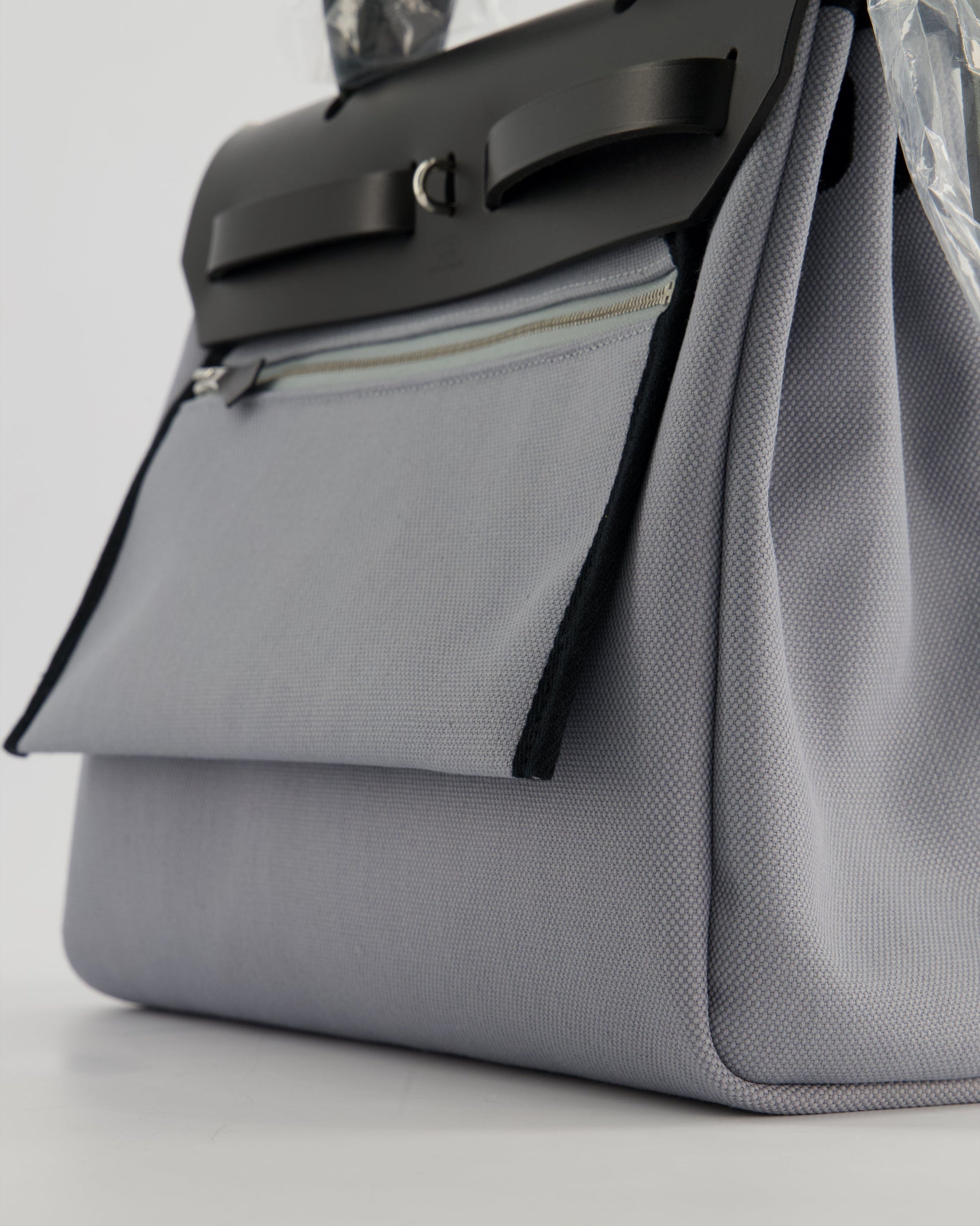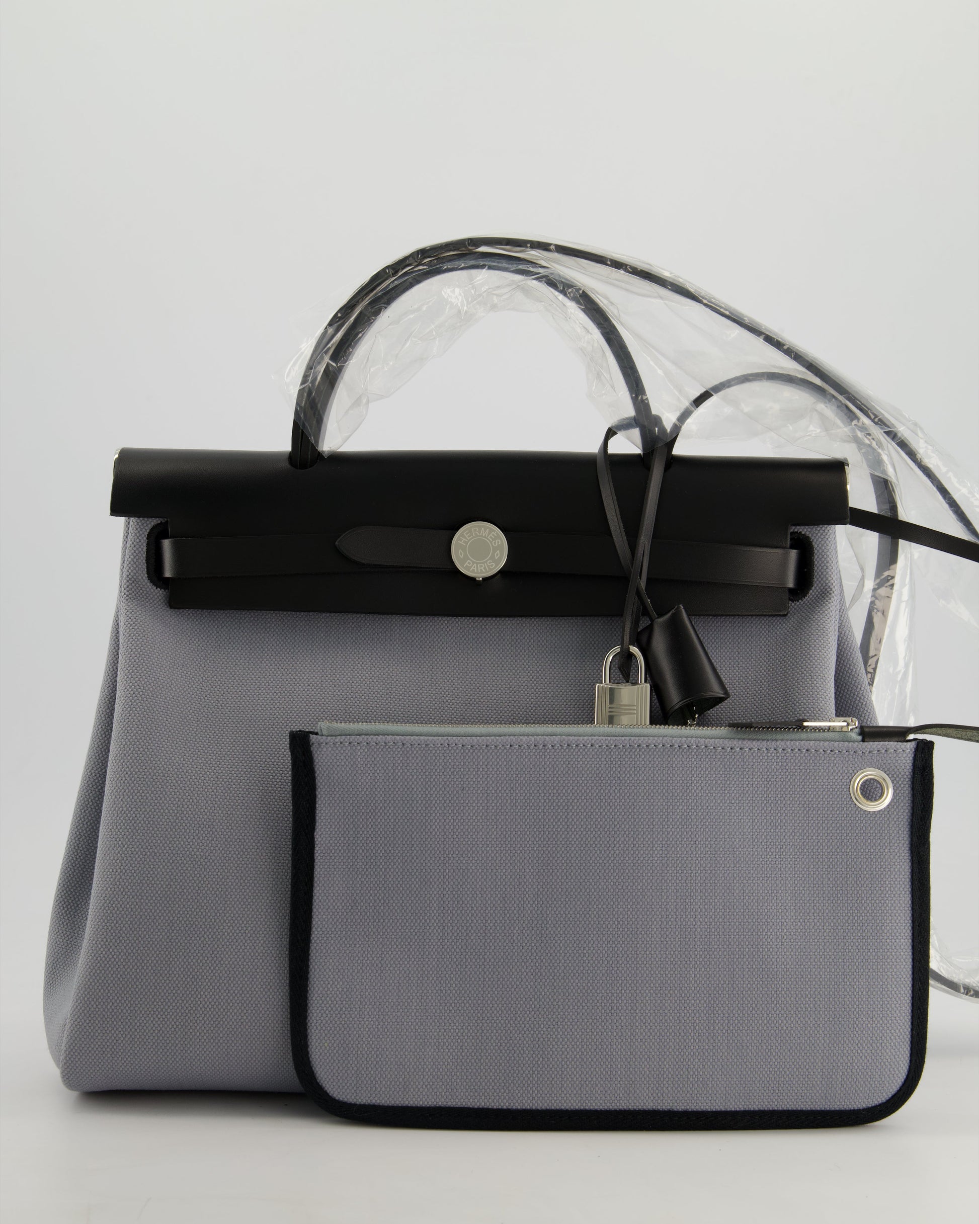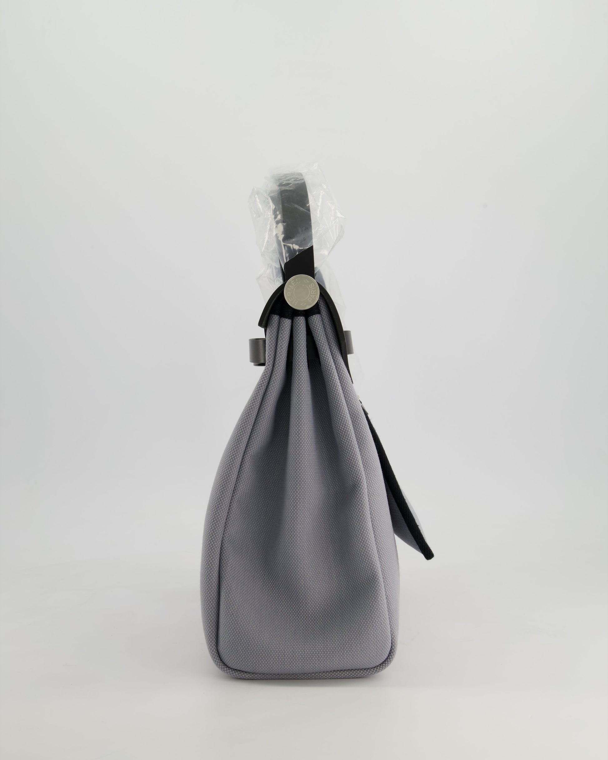 *HOT & NEW COLOUR* Hermès Herbag 31 Zip Bag in Gris Pantin Toile Officier Canvas, Noir Vache Hunter Leather with Palladium Hardware