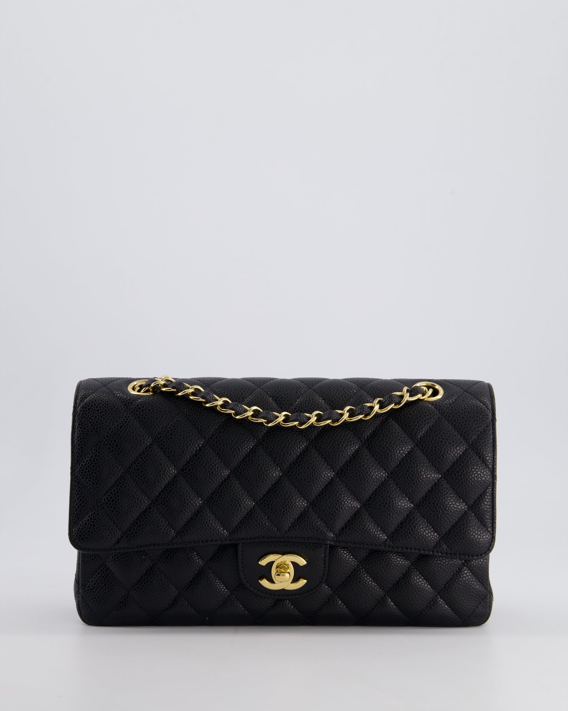 *HOT* Chanel Black Medium Classic Double Flap Bag in Caviar Leather with Gold Hardware